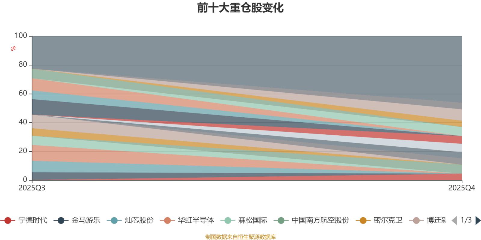 该基金持股集中度较高。截至2025年四季度末,基金十大重仓股分别是中国东航、阿里巴巴-W、中国南方航空股份、科达利、立讯精密、牧原股份、腾讯控股、宁德时代、中国太保、中国人寿。