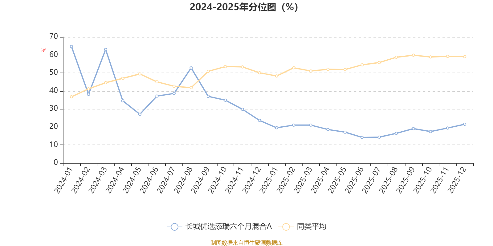 通过所选区间该基金净值增长率分位图,可以观察该基金与同类基金业绩比较情况。图为坐标原点到区间内某时点的净值增长率在同类基金中的分位数。