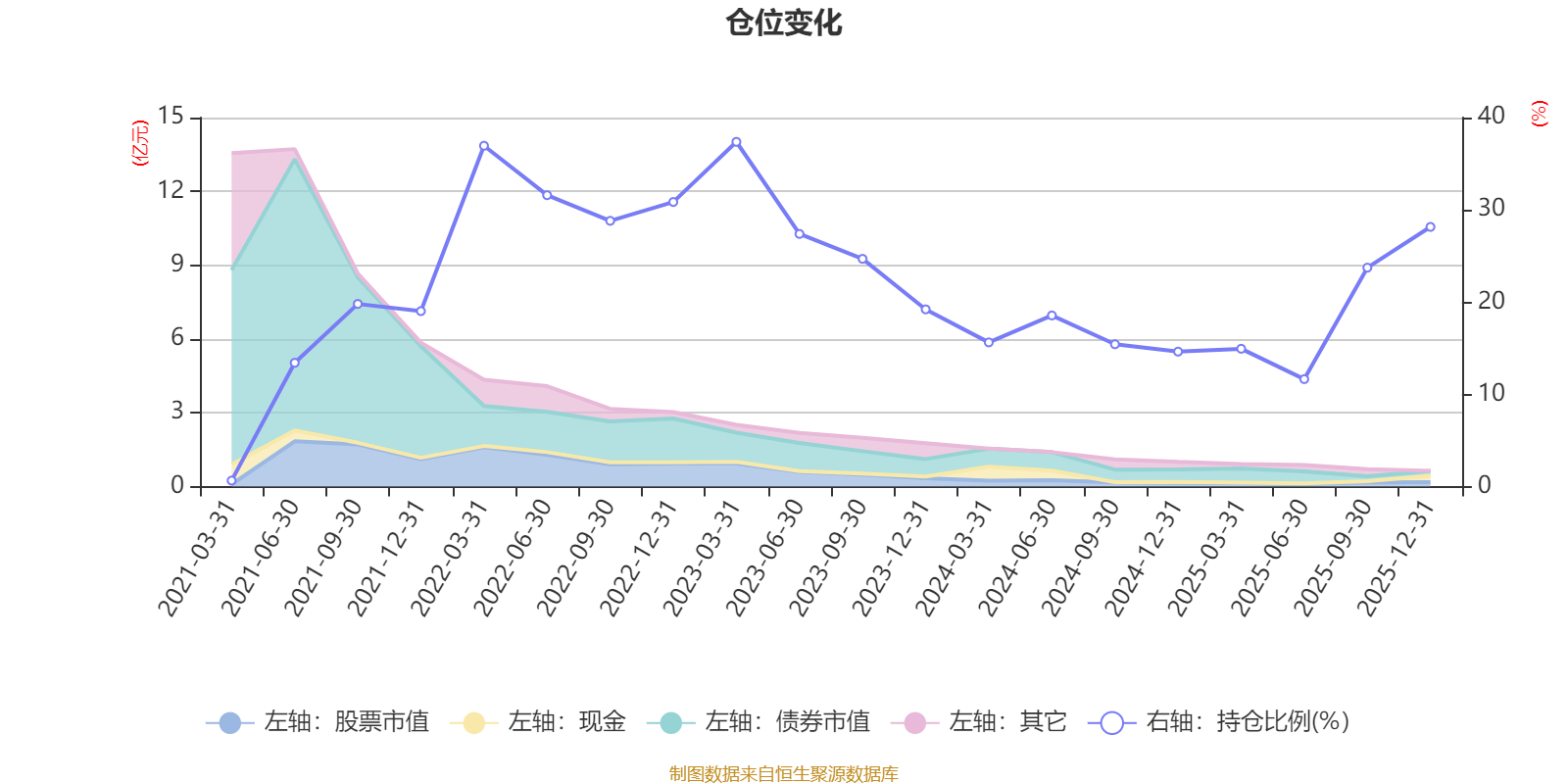 基金管理人在四季报中表示,四季度市场呈现震荡走势,行业分化明显,表现较好的主线包括商业航天、有色金属、反内卷以及AI。基金主要寻找发生经营拐点或具备高成长空间的行业和公司,目前主要配置在券商、化工、机器人等方向上。