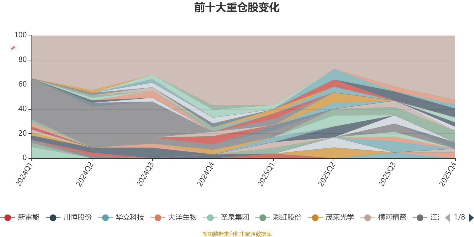 截至2025年四季度末,基金十大重仓股分别是指南针、东吴证券、双星新材、大洋生物、合合信息、小菜园、华泰证券、华丰科技、顶点软件、横河精密。
