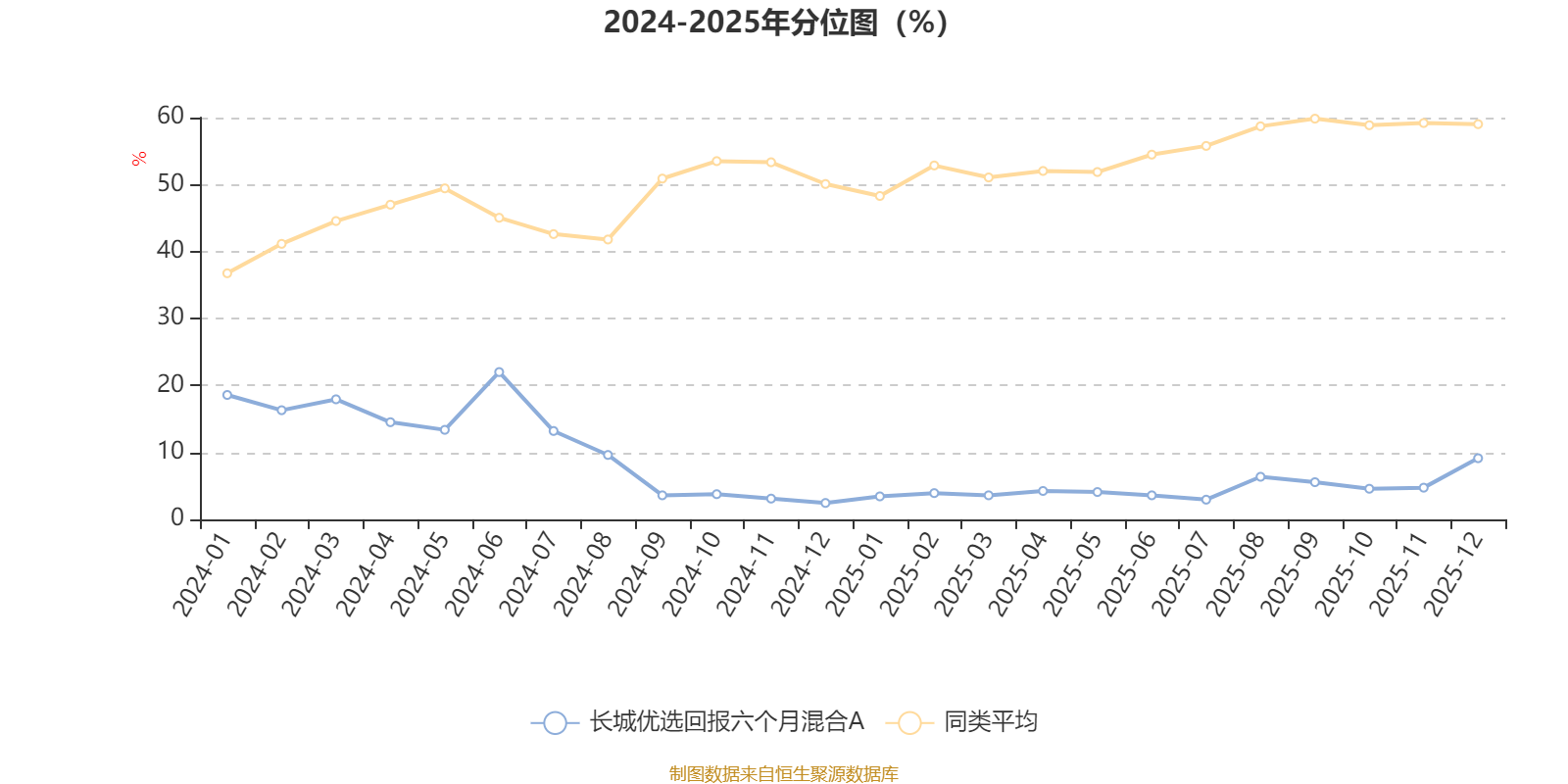 通过所选区间该基金净值增长率分位图,可以观察该基金与同类基金业绩比较情况。图为坐标原点到区间内某时点的净值增长率在同类基金中的分位数。