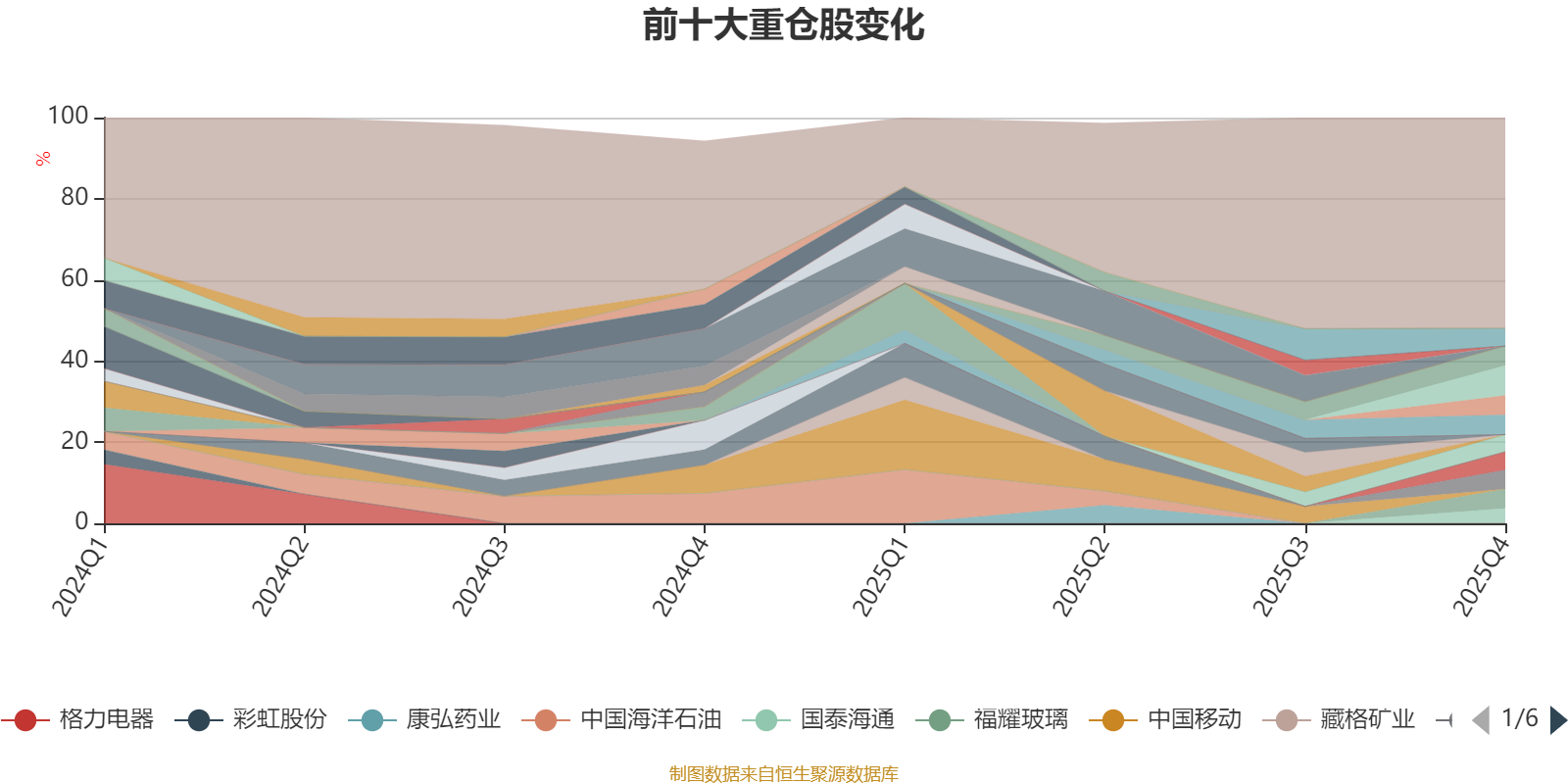 截至2025年四季度末,基金十大重仓股分别是豪迈科技、海尔智家、美的集团、福耀玻璃、华域汽车、甘李药业、恩华药业、锡业股份、中国巨石、国泰海通。