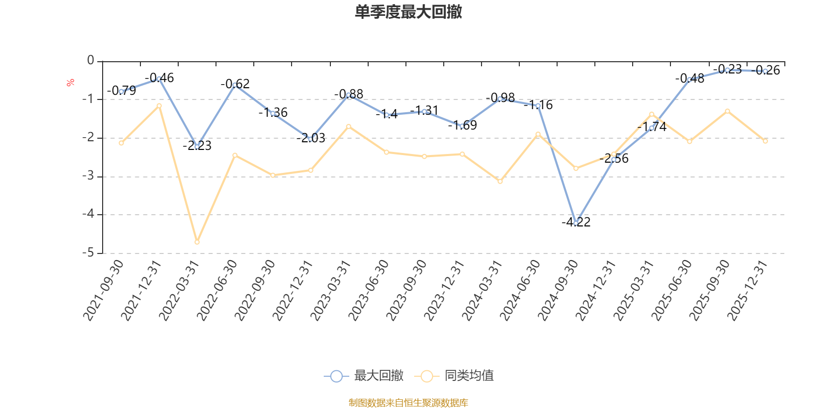 截至1月22日,基金近三年最大回撤为4.3%,同类可比基金排名142/527。单季度最大回撤出现在2024年三季度,为4.22%。