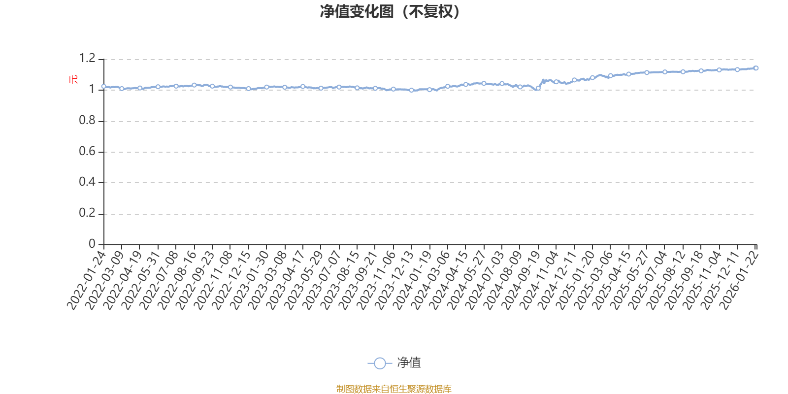 该基金属于偏债混合型基金。截至1月22日,单位净值为1.142元。基金经理是孙丹和张家旺。