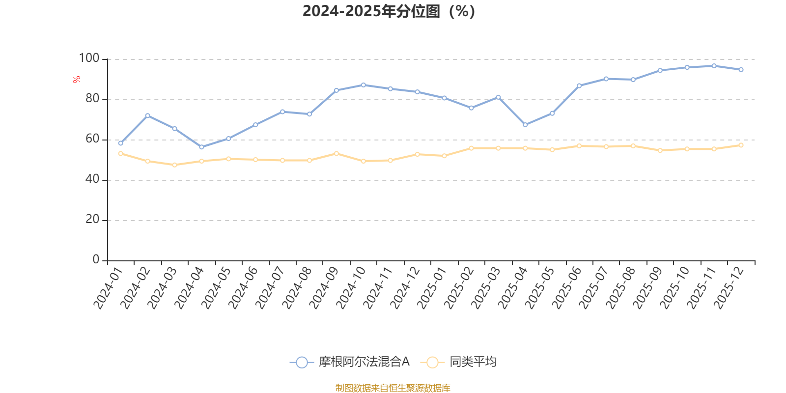 截至1月22日,摩根阿尔法混合A近三个月复权单位净值增长率为2.87%,位于同类可比基金229/265;近半年复权单位净值增长率为26.12%,位于同类可比基金126/265;近一年复权单位净值增长率为54.36%,位于同类可比基金57/265;近三年复权单位净值增长率为32.79%,位于同类可比基金73/256。