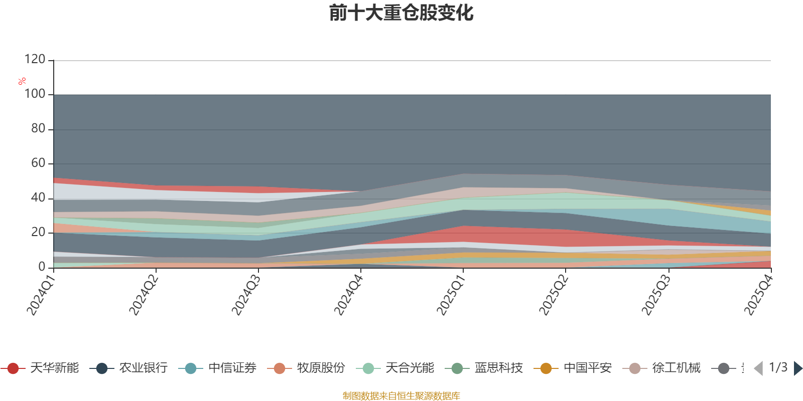 截至2025年四季度末,基金十大重仓股分别是宁德时代、立讯精密、亿纬锂能、天华新能、东山精密、牧原股份、柳工、美的集团、中国平安、招商银行。