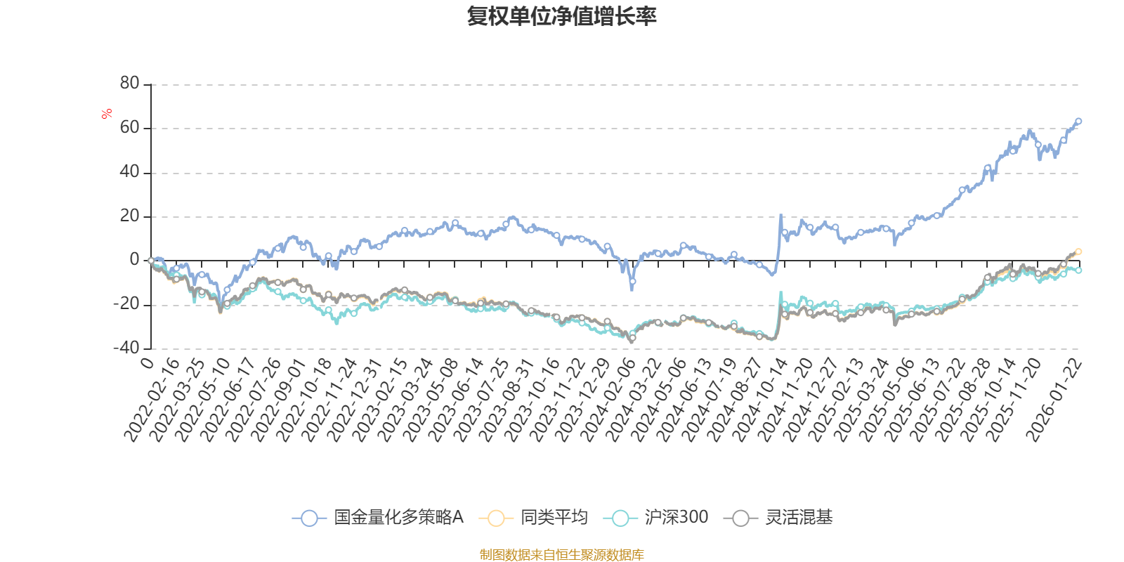 截至1月22日,国金量化多策略A近三个月复权单位净值增长率为7.76%,位于同类可比基金699/1286;近半年复权单位净值增长率为23.61%,位于同类可比基金574/1286;近一年复权单位净值增长率为49.01%,位于同类可比基金342/1286;近三年复权单位净值增长率为45.98%,位于同类可比基金211/1286。