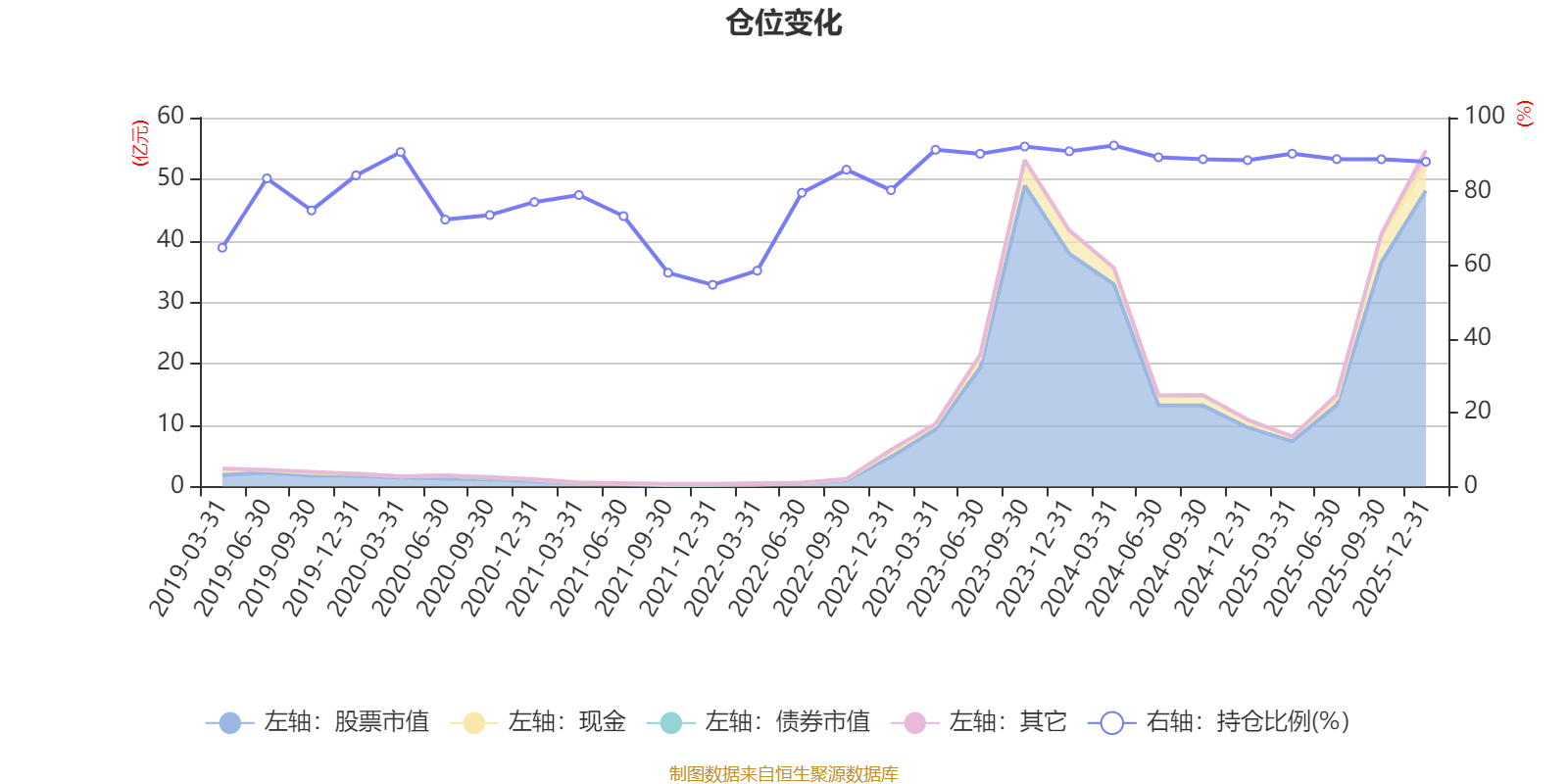 据定期报告数据统计,近三年平均股票仓位为89.92%,同类平均为72.57%。2024年一季度末基金达到92.45%的最高仓位,2021年末最低,为54.68%。