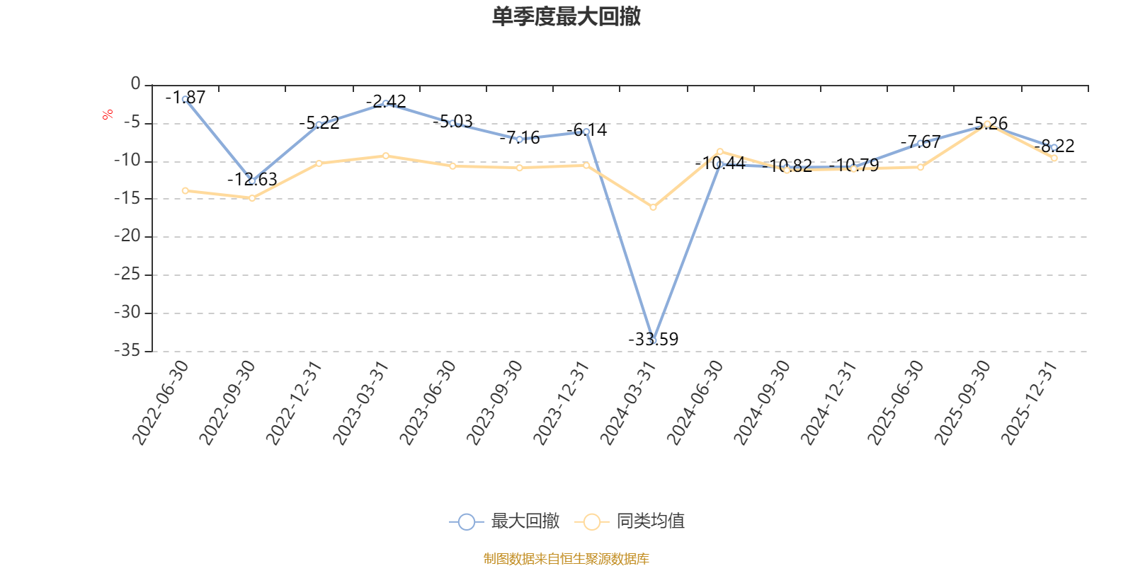截至1月22日,基金近三年最大回撤为34.59%,同类可比基金排名77/177。单季度最大回撤出现在2024年一季度,为33.59%。