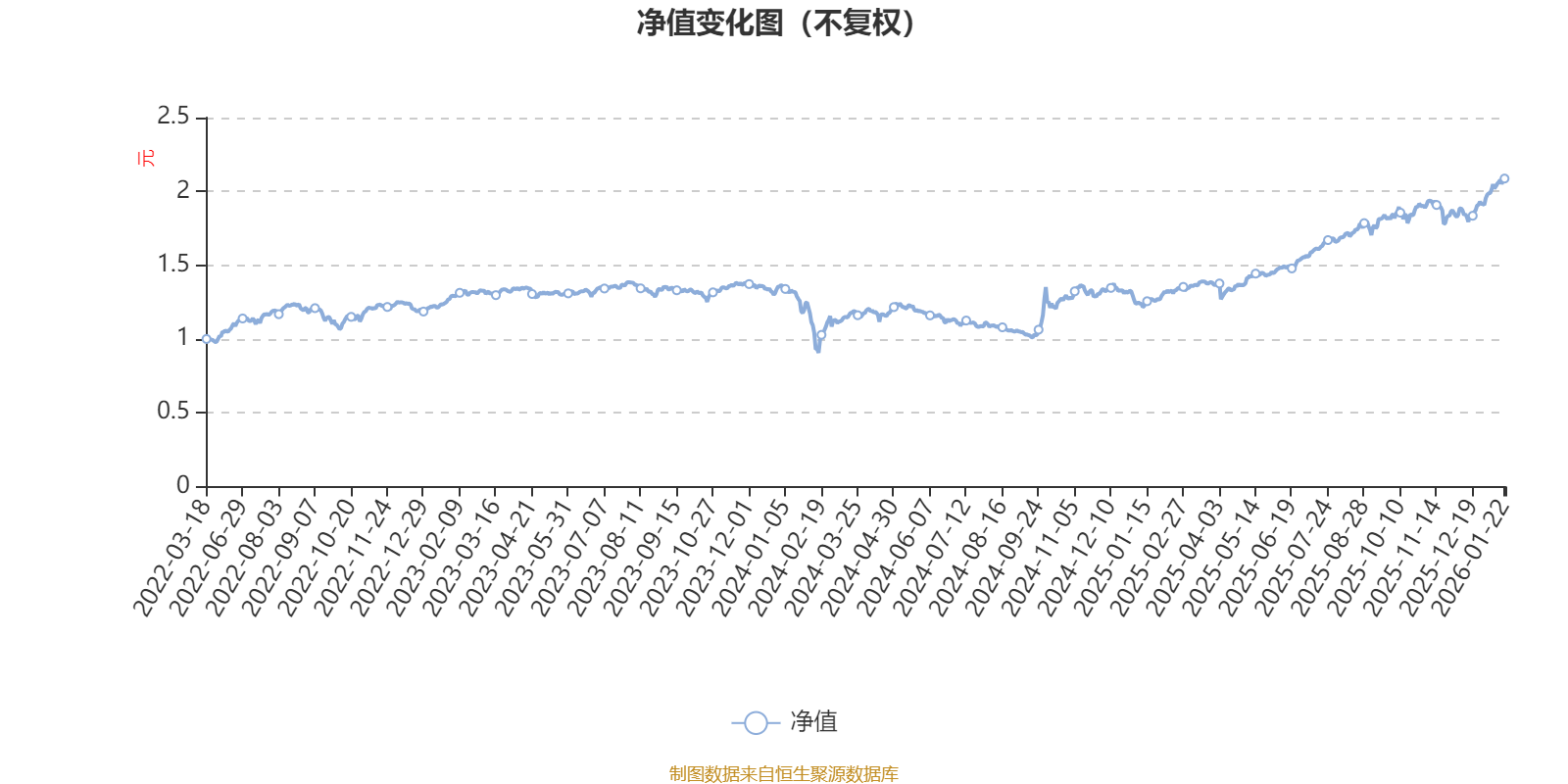 截至2025年四季度末,基金十大重仓股分别是蓝色光标、江波龙、中兴通讯、东山精密、格力电器、潍柴动力、阳光电源、鹏辉能源、国轩高科、亨通光电。
