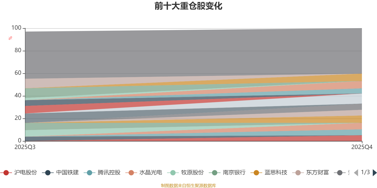 该基金持股集中度较高。截至2025年四季度末,基金十大重仓股分别是立讯精密、中际旭创、阿里巴巴-W、蓝思科技、水晶光电、贵州茅台、腾讯控股、东方财富、沪电股份、工业富联。