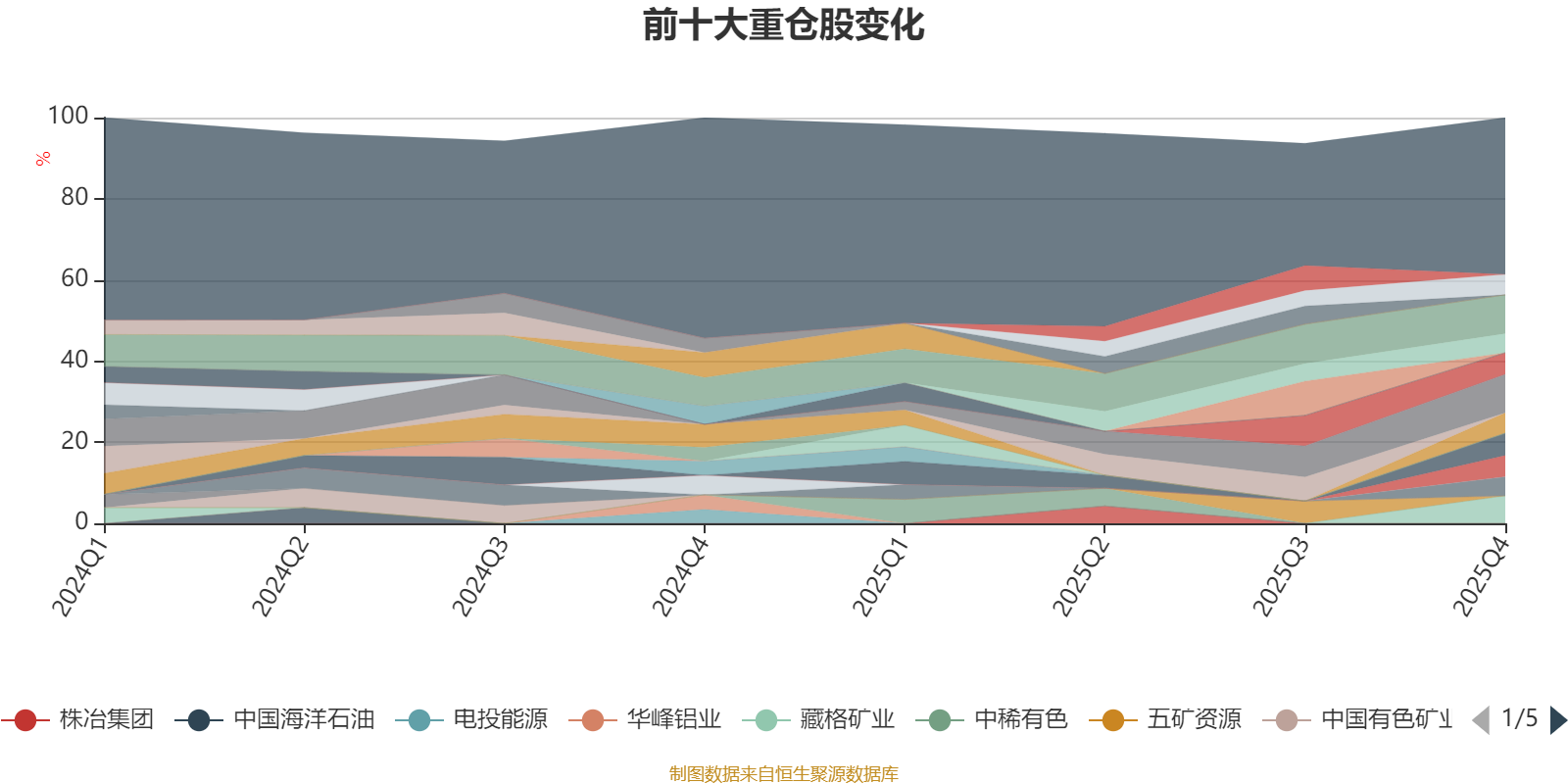 截至2025年四季度末,基金十大重仓股分别是紫金矿业、洛阳钼业、藏格矿业、中国铝业、江西铜业股份、紫金黄金国际、中国黄金国际、西部矿业、招金矿业、中国宏桥。