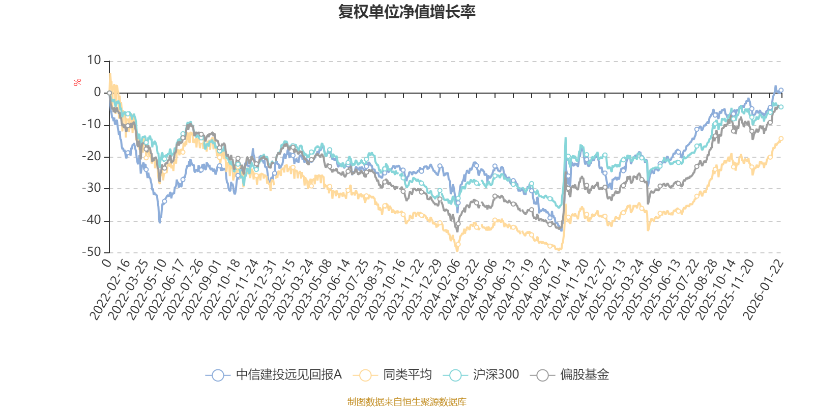 截至1月22日,中信建投远见回报A近三个月复权单位净值增长率为6.88%,位于同类可比基金414/621;近半年复权单位净值增长率为13.81%,位于同类可比基金477/621;近一年复权单位净值增长率为38.51%,位于同类可比基金334/613;近三年复权单位净值增长率为24.82%,位于同类可比基金208/535。