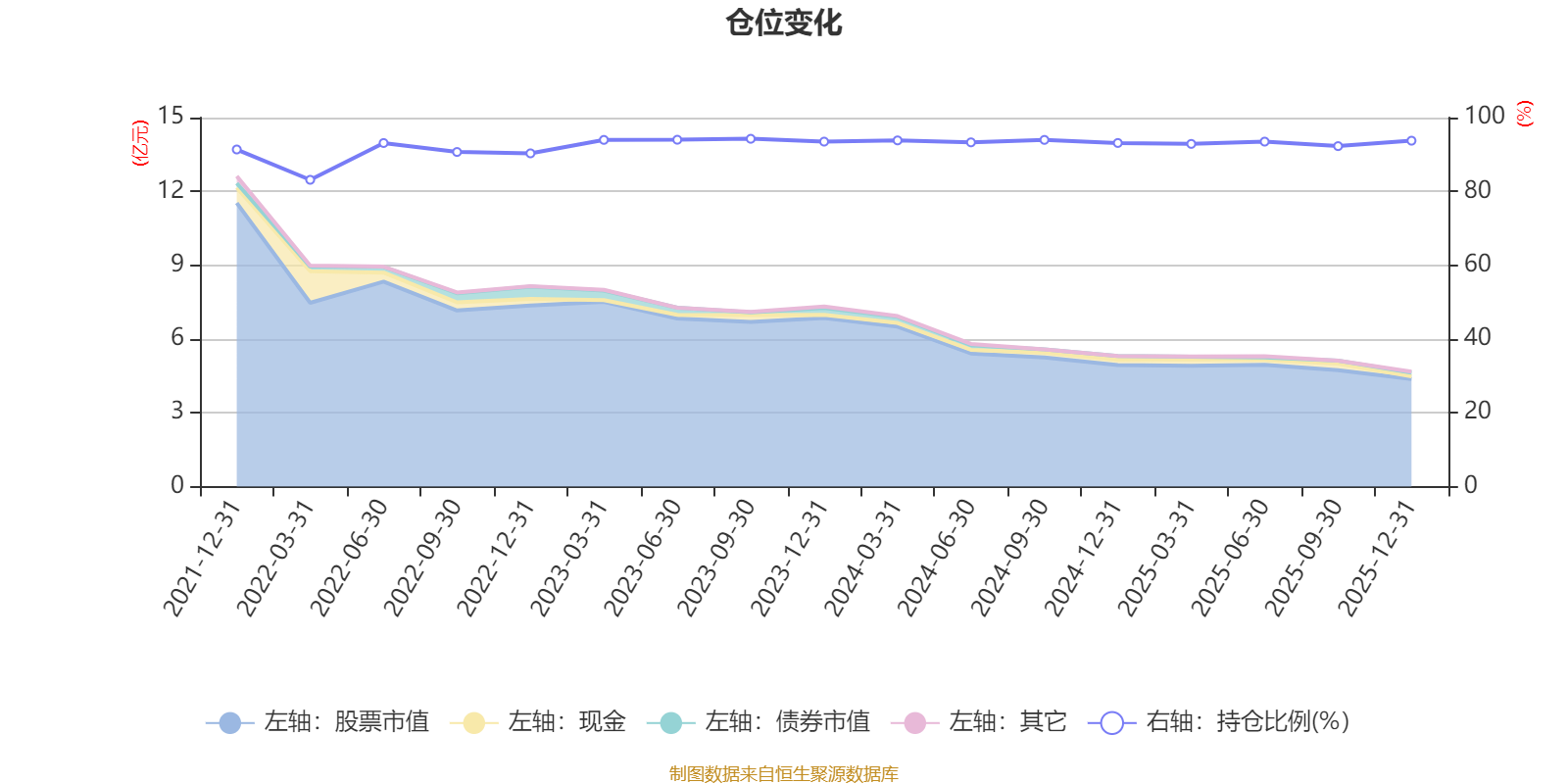 据定期报告数据统计,近三年平均股票仓位为93.52%,同类平均为85.83%。2023年三季度末基金达到94.26%的最高仓位,2022年一季度末最低,为83.14%。
