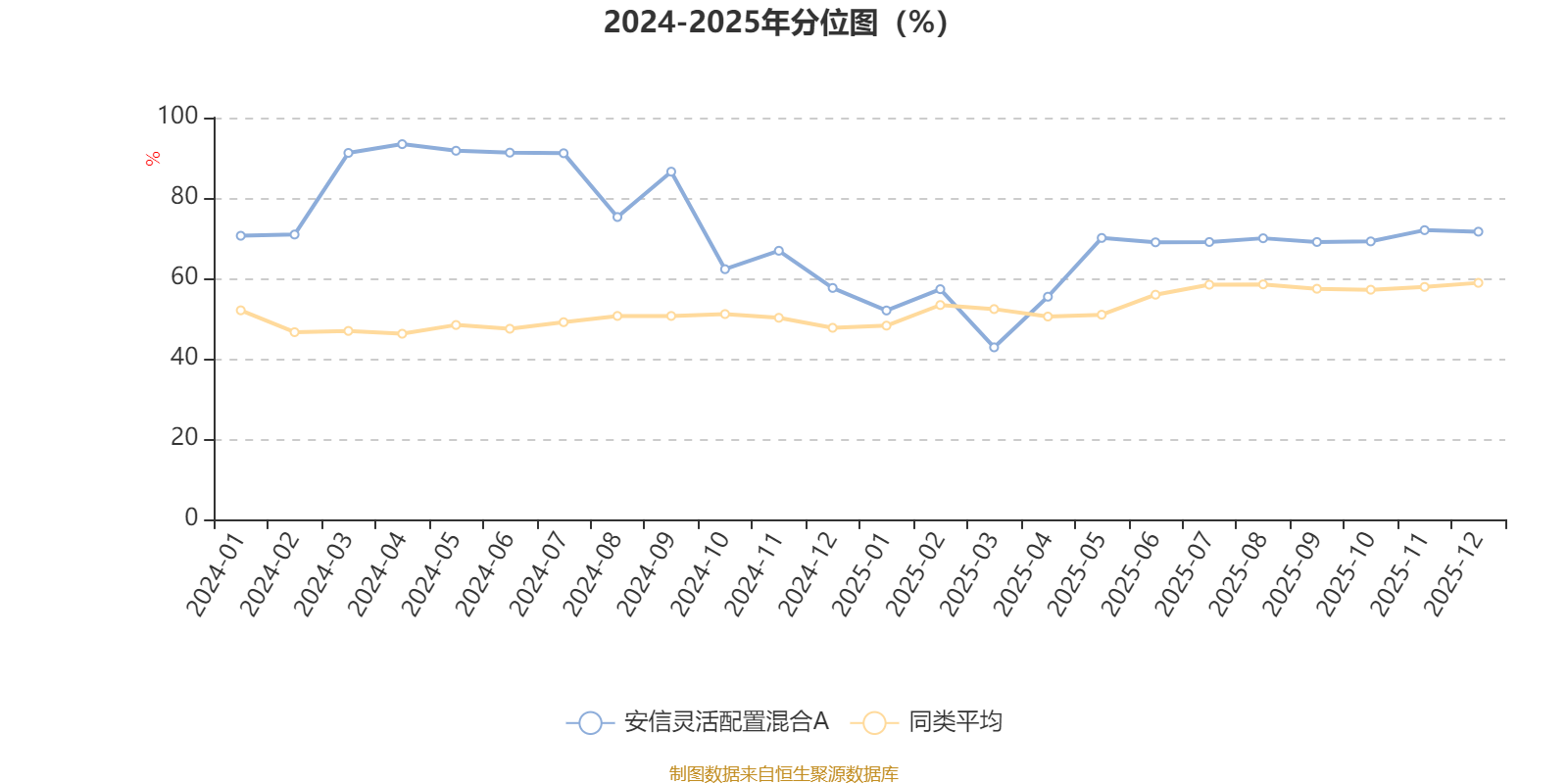 通过所选区间该基金净值增长率分位图,可以观察该基金与同类基金业绩比较情况。图为坐标原点到区间内某时点的净值增长率在同类基金中的分位数。