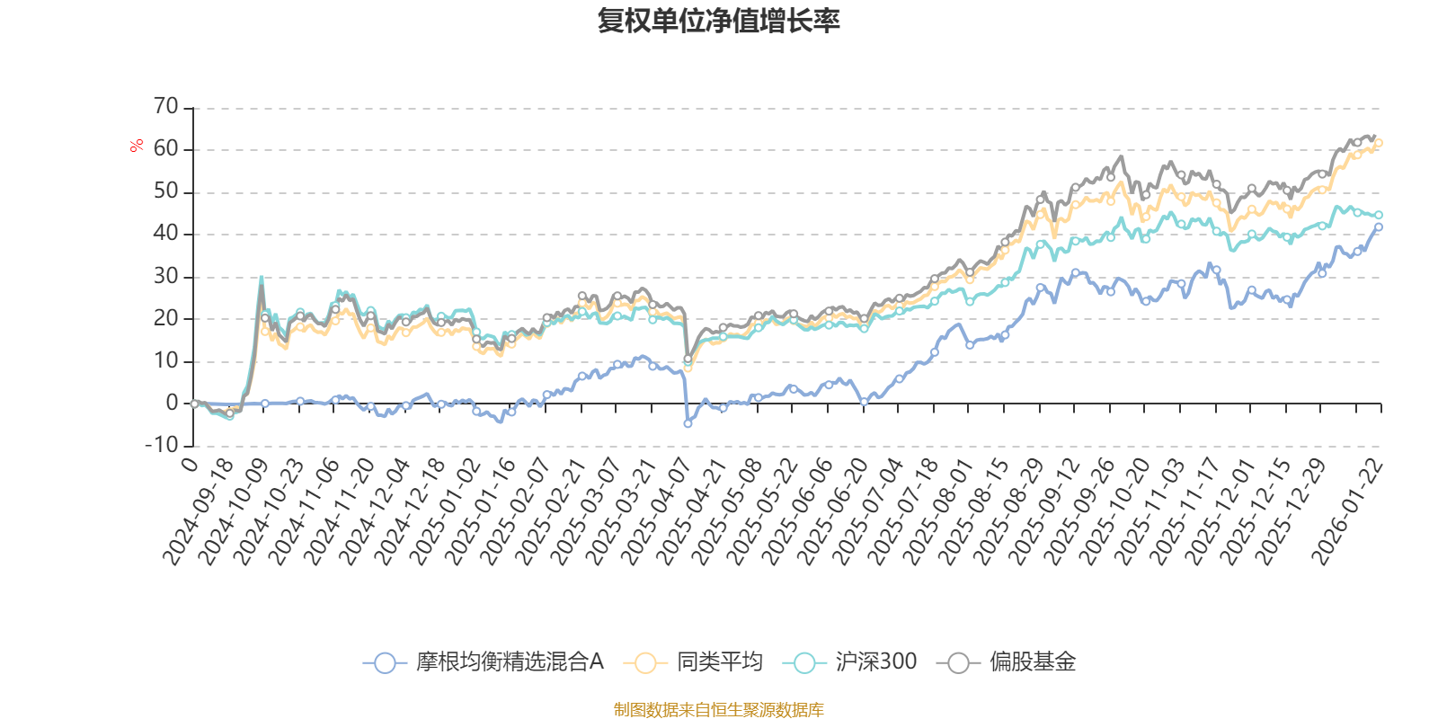 截至1月22日,摩根均衡精选混合A近三个月复权单位净值增长率为13.89%,位于同类可比基金195/689;近半年复权单位净值增长率为22.35%,位于同类可比基金372/689;近一年复权单位净值增长率为41.31%,位于同类可比基金304/673。