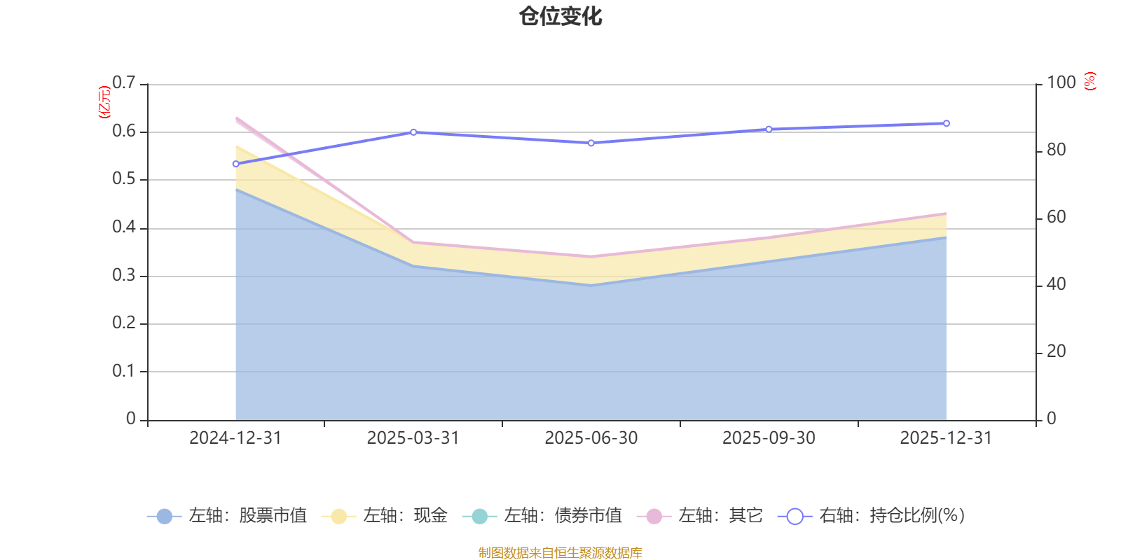 据定期报告数据统计,成立以来平均股票仓位为83.82%,同类平均为84.04%。2025年末基金达到88.29%的最高仓位,2024年末最低,为76.22%。