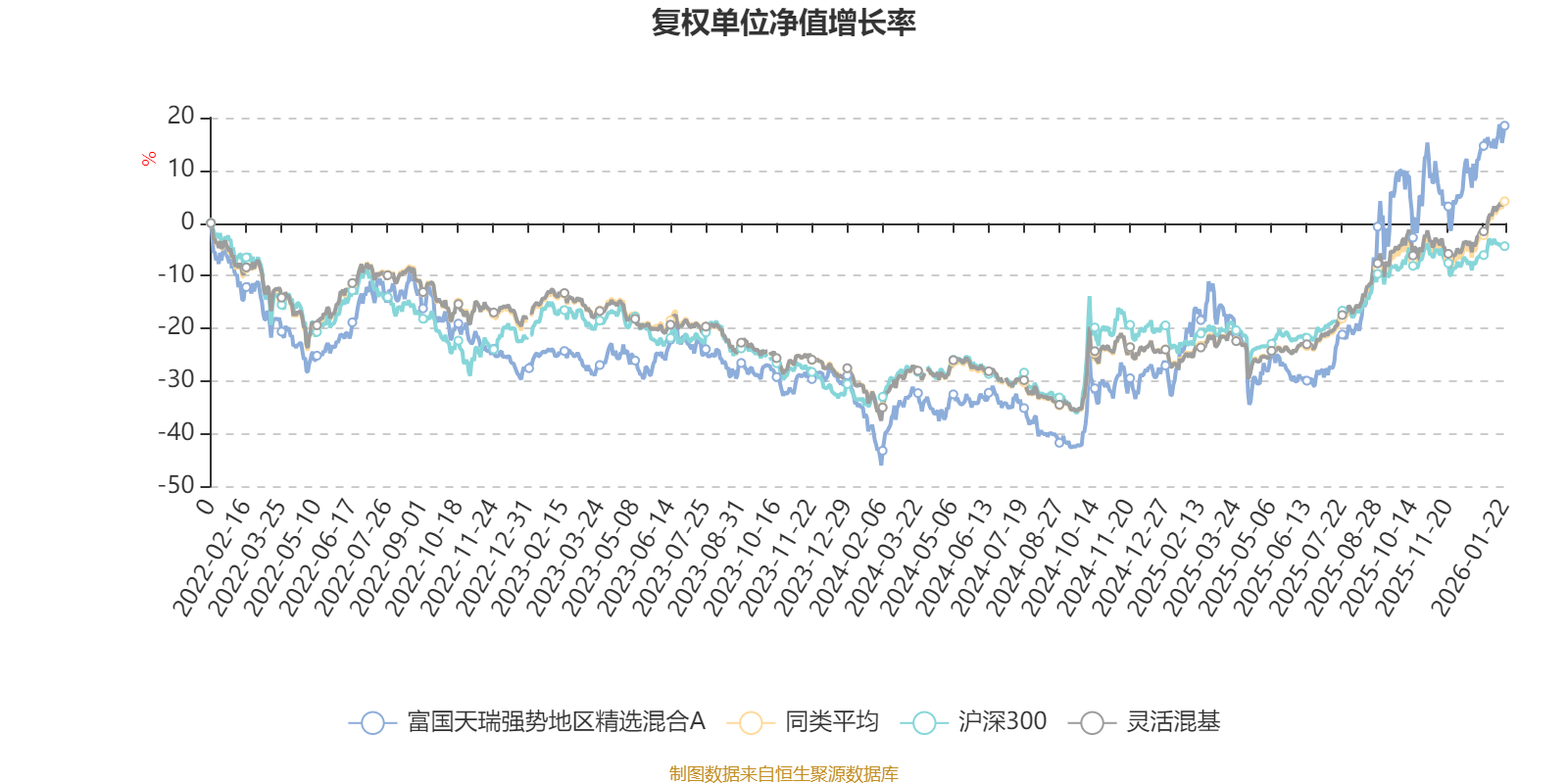截至1月22日,富国天瑞强势地区精选混合A近三个月复权单位净值增长率为12.88%,位于同类可比基金399/1286;近半年复权单位净值增长率为50.23%,位于同类可比基金152/1286;近一年复权单位净值增长率为48.15%,位于同类可比基金356/1286;近三年复权单位净值增长率为56.18%,位于同类可比基金146/1286。