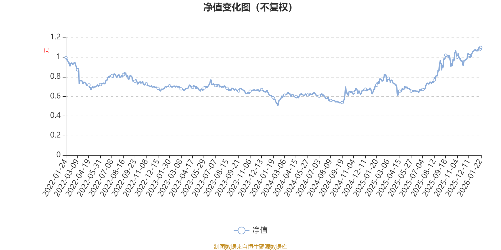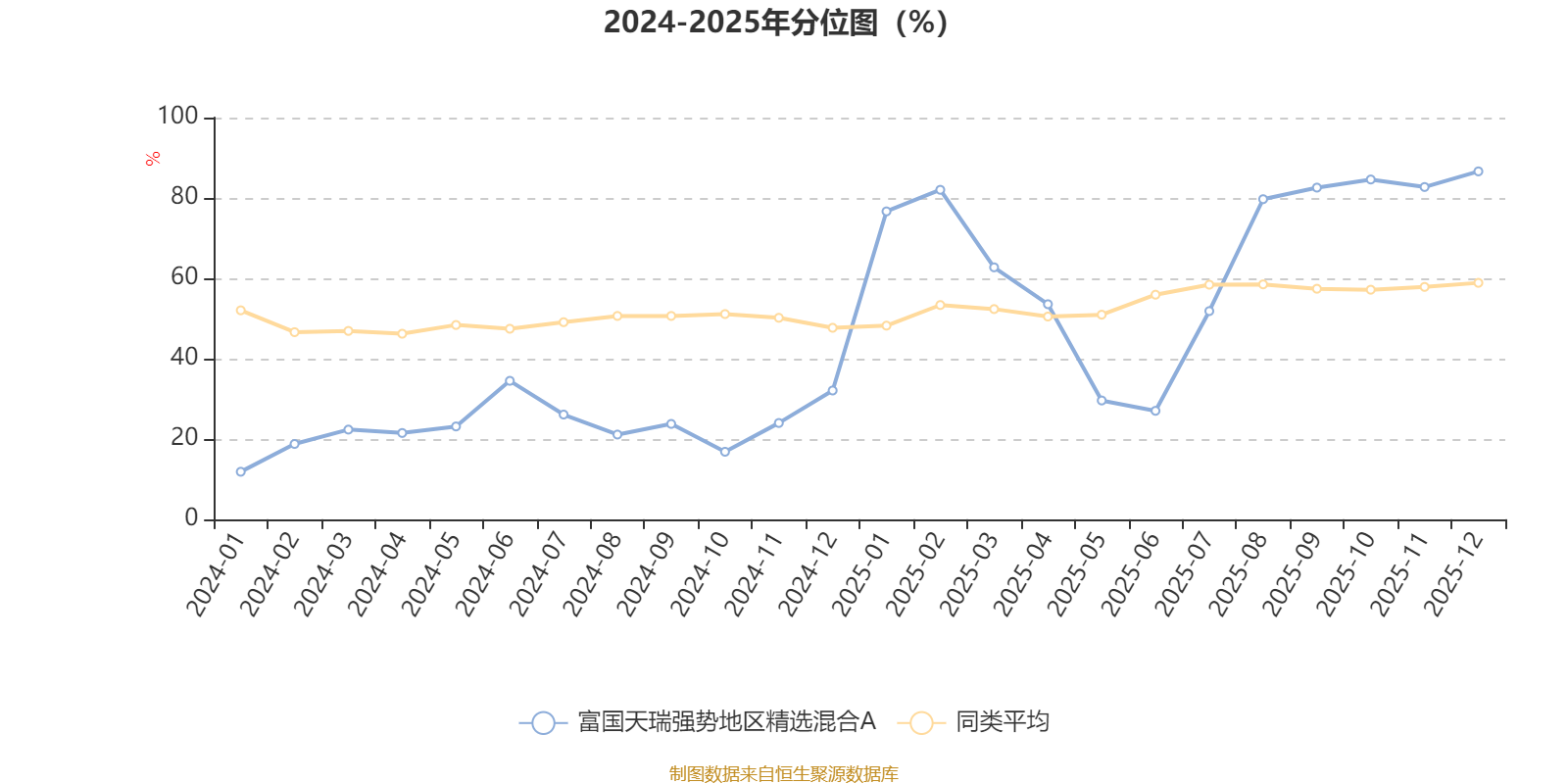通过所选区间该基金净值增长率分位图,可以观察该基金与同类基金业绩比较情况。图为坐标原点到区间内某时点的净值增长率在同类基金中的分位数。