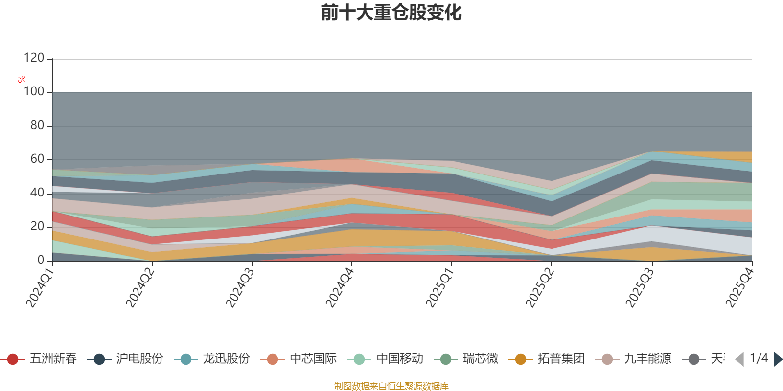 截至2025年四季度末,基金十大重仓股分别是中际旭创、新易盛、东山精密、阳光电源、峰岹科技、深南电路、工业富联、寒武纪、华通线缆、沪电股份。