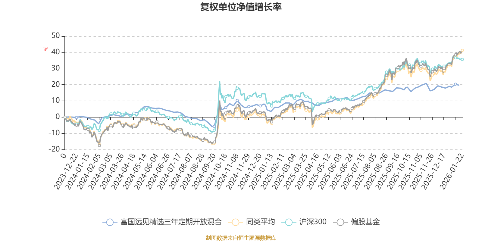 截至1月16日,富国远见精选三年定期开放混合近三个月复权单位净值增长率为0.92%,位于同类可比基金570/621;近半年复权单位净值增长率为6.37%,位于同类可比基金554/621;近一年复权单位净值增长率为15.56%,位于同类可比基金563/613。