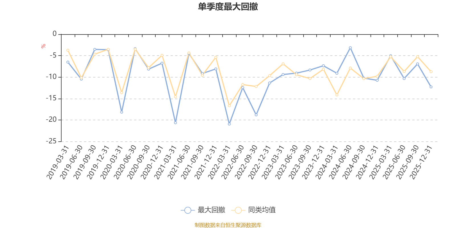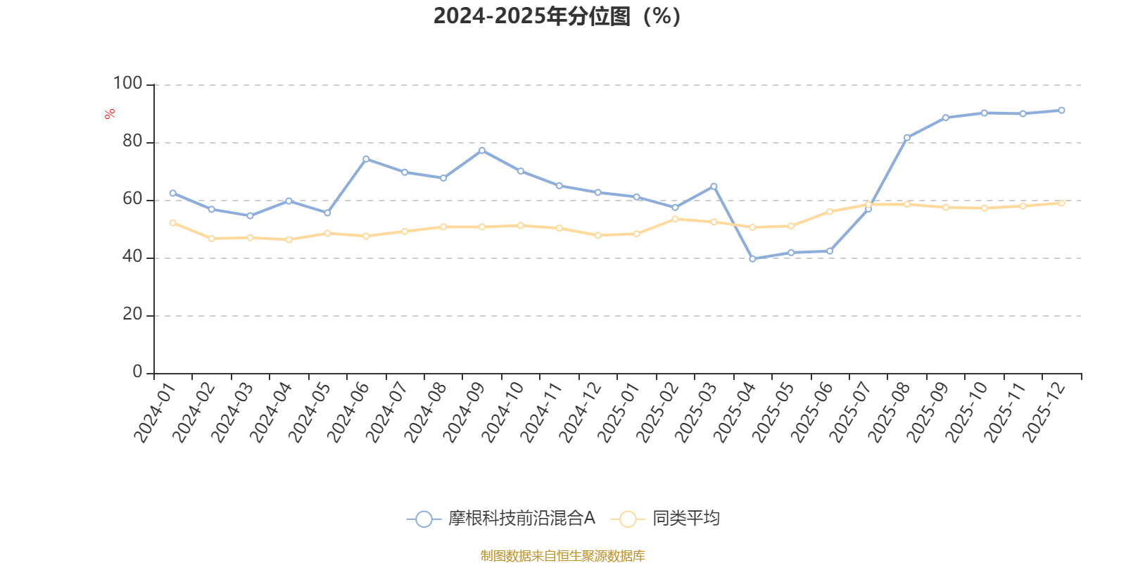 通过所选区间该基金净值增长率分位图,可以观察该基金与同类基金业绩比较情况。图为坐标原点到区间内某时点的净值增长率在同类基金中的分位数。