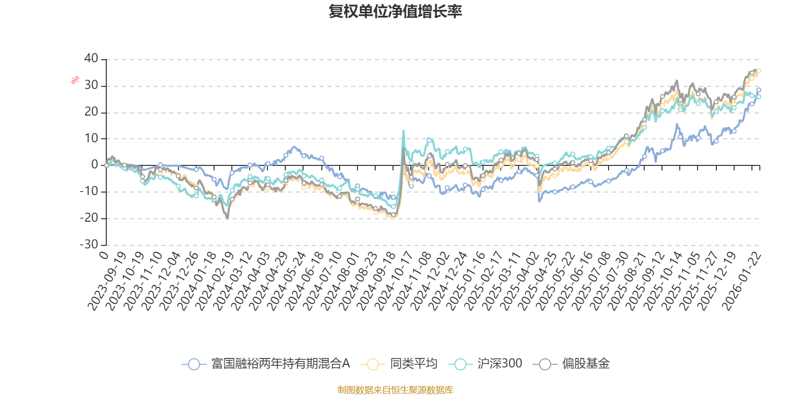 截至1月22日,富国融裕两年持有期混合A近三个月复权单位净值增长率为17.57%,位于同类可比基金72/621;近半年复权单位净值增长率为32.30%,位于同类可比基金195/621;近一年复权单位净值增长率为40.28%,位于同类可比基金305/613。