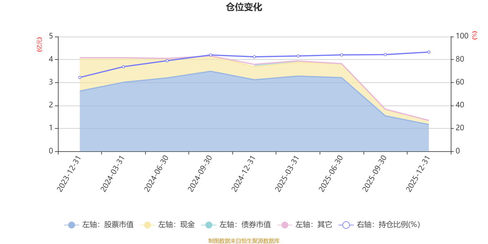 据定期报告数据统计,成立以来平均股票仓位为80.18%,同类平均为85.83%。2025年末基金达到86.51%的最高仓位,2023年末最低,为64.44%。