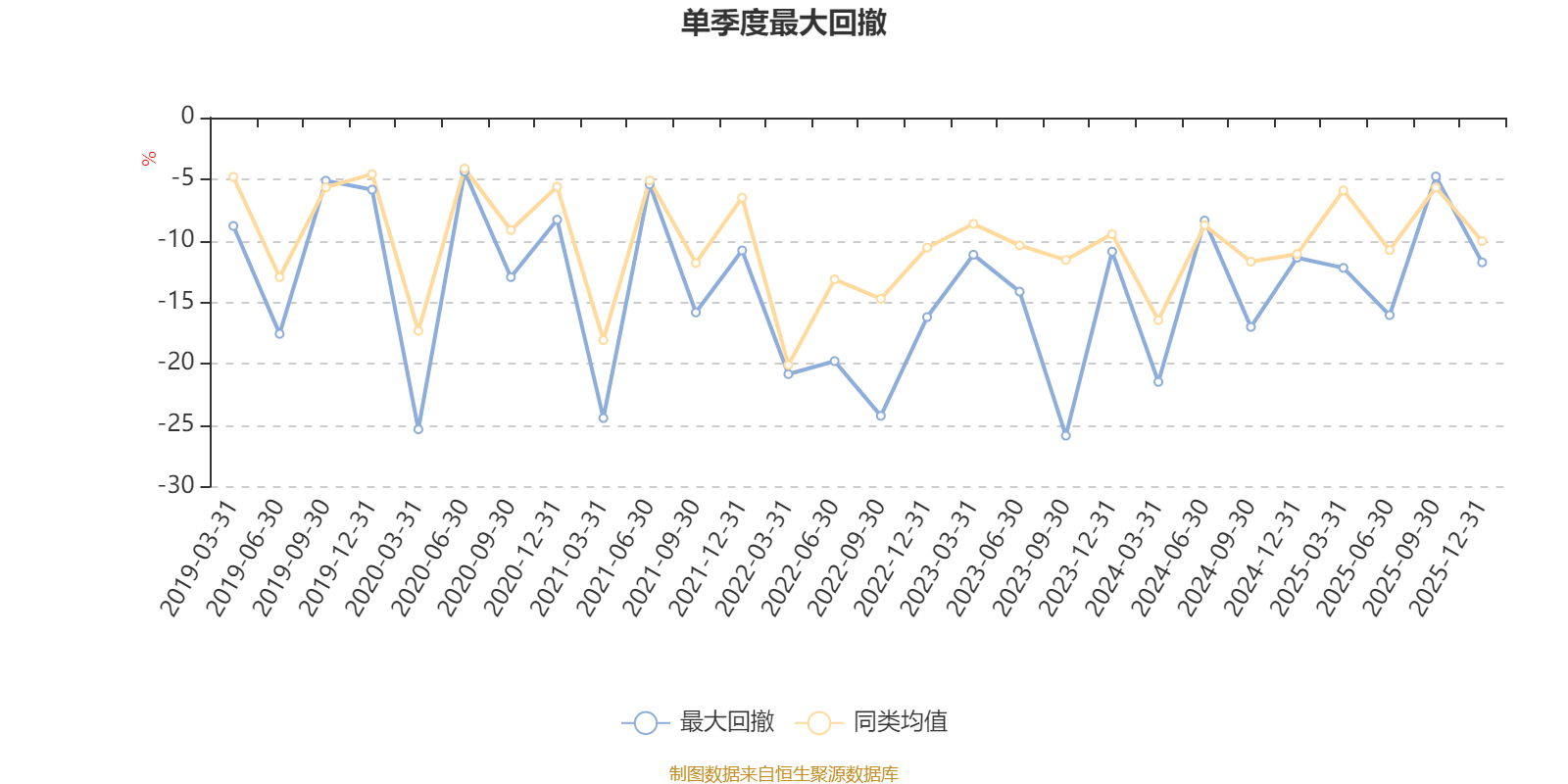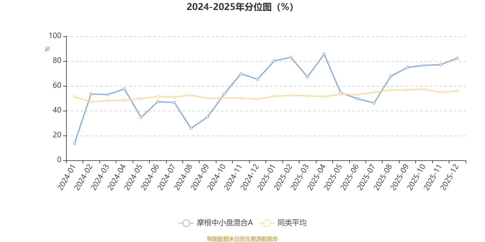 通过所选区间该基金净值增长率分位图,可以观察该基金与同类基金业绩比较情况。图为坐标原点到区间内某时点的净值增长率在同类基金中的分位数。