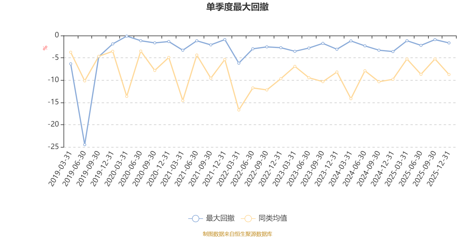 截至1月22日,基金近三年最大回撤为6.38%,同类可比基金排名96/1263。单季度最大回撤出现在2019年二季度,为24.45%。