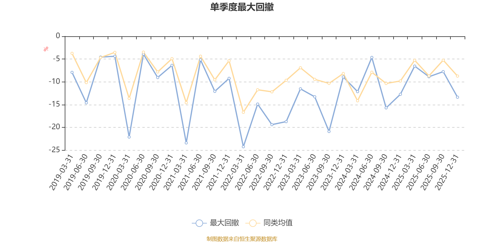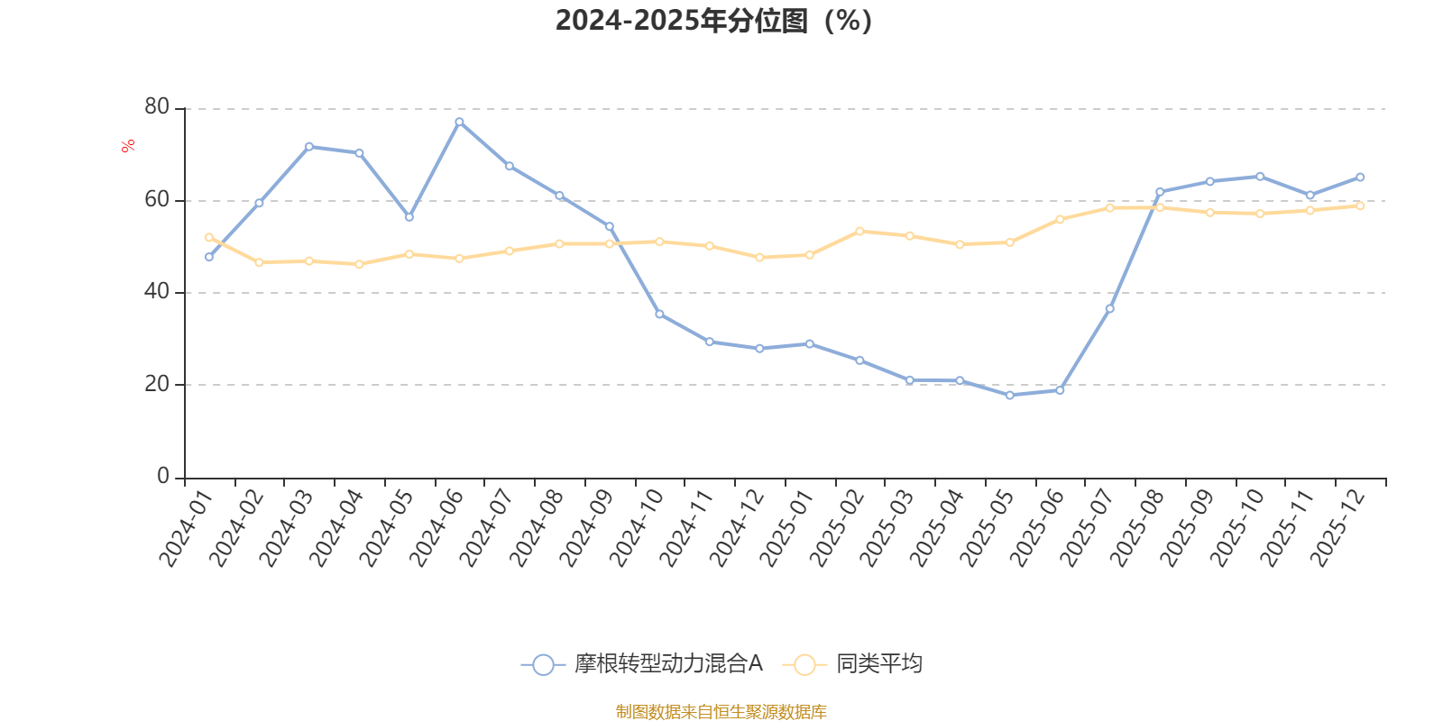 通过所选区间该基金净值增长率分位图,可以观察该基金与同类基金业绩比较情况。图为坐标原点到区间内某时点的净值增长率在同类基金中的分位数。