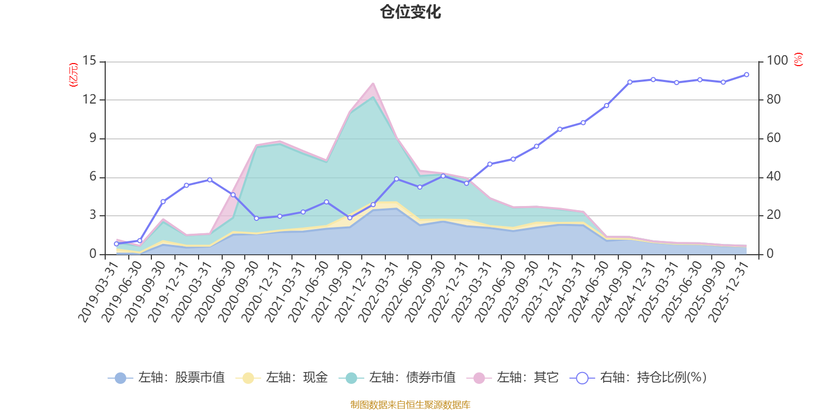 据定期报告数据统计,近三年平均股票仓位为75.4%,同类平均为72.57%。2025年末基金达到93.21%的最高仓位,2019年一季度末最低,为5.5%。