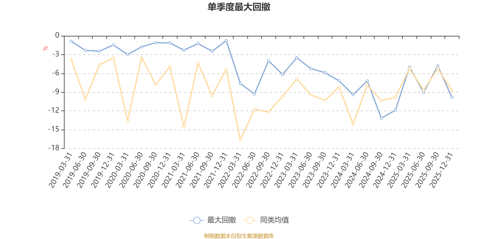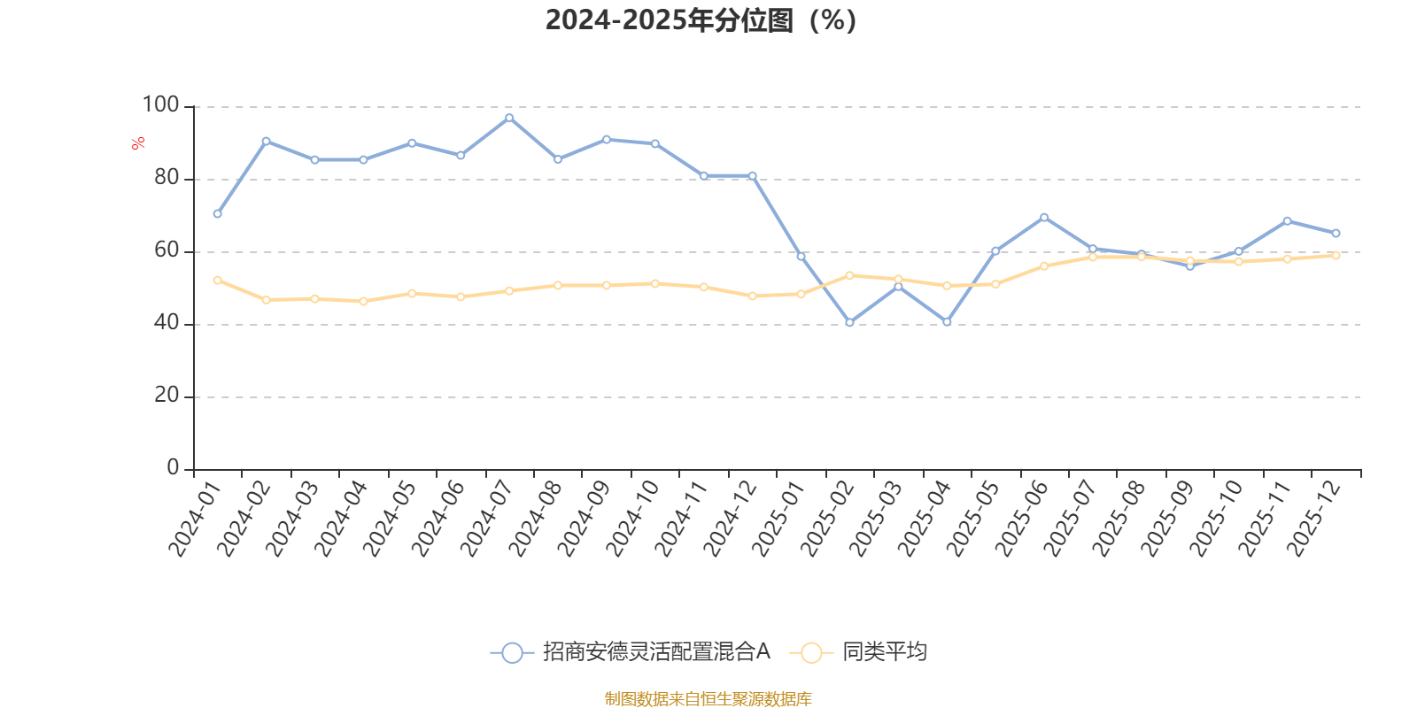 通过所选区间该基金净值增长率分位图,可以观察该基金与同类基金业绩比较情况。图为坐标原点到区间内某时点的净值增长率在同类基金中的分位数。