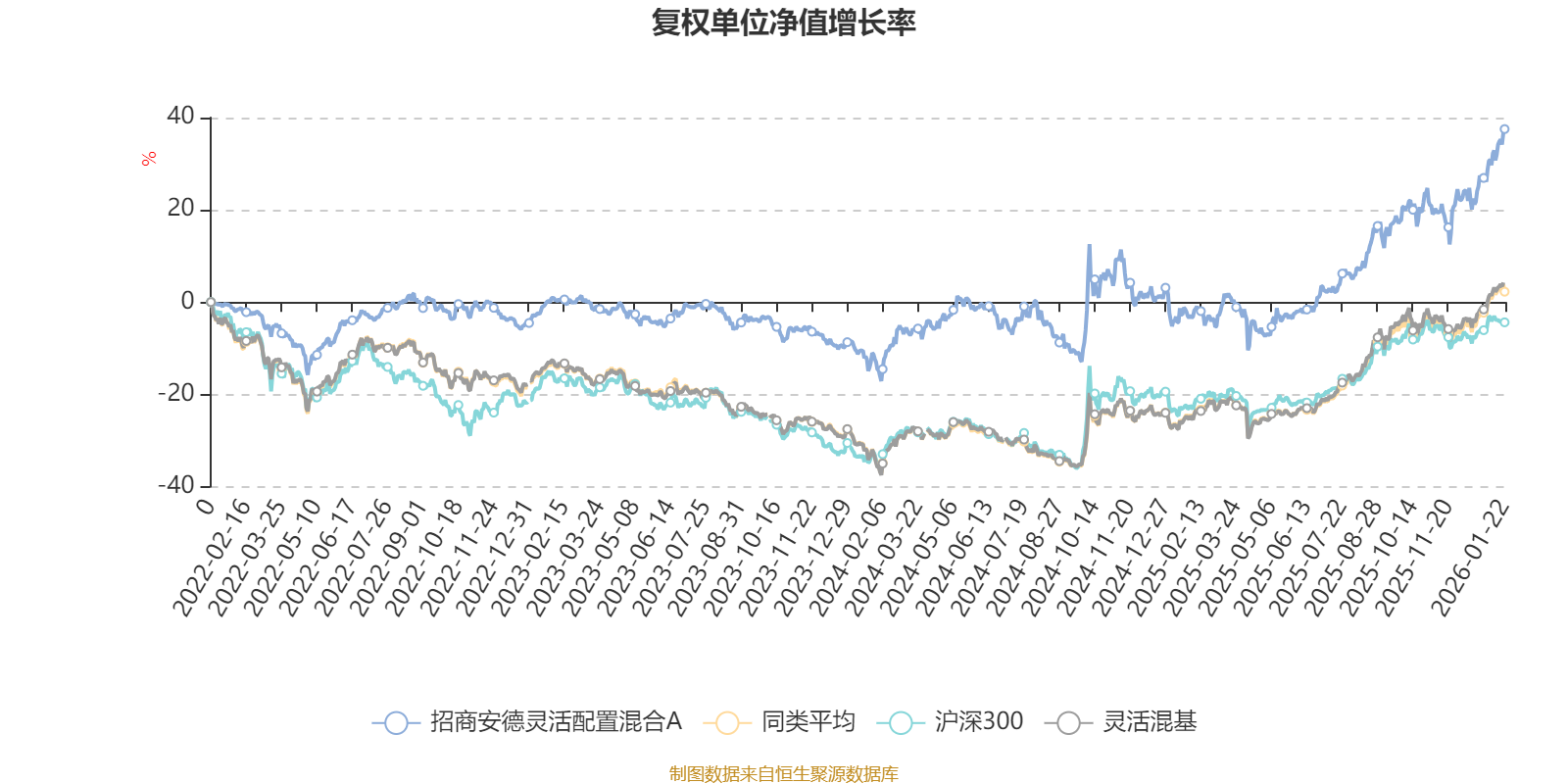 截至1月22日,招商安德灵活配置混合A近三个月复权单位净值增长率为14.91%,位于同类可比基金268/1286;近半年复权单位净值增长率为29.50%,位于同类可比基金449/1286;近一年复权单位净值增长率为41.78%,位于同类可比基金471/1286;近三年复权单位净值增长率为37.26%,位于同类可比基金297/1286。