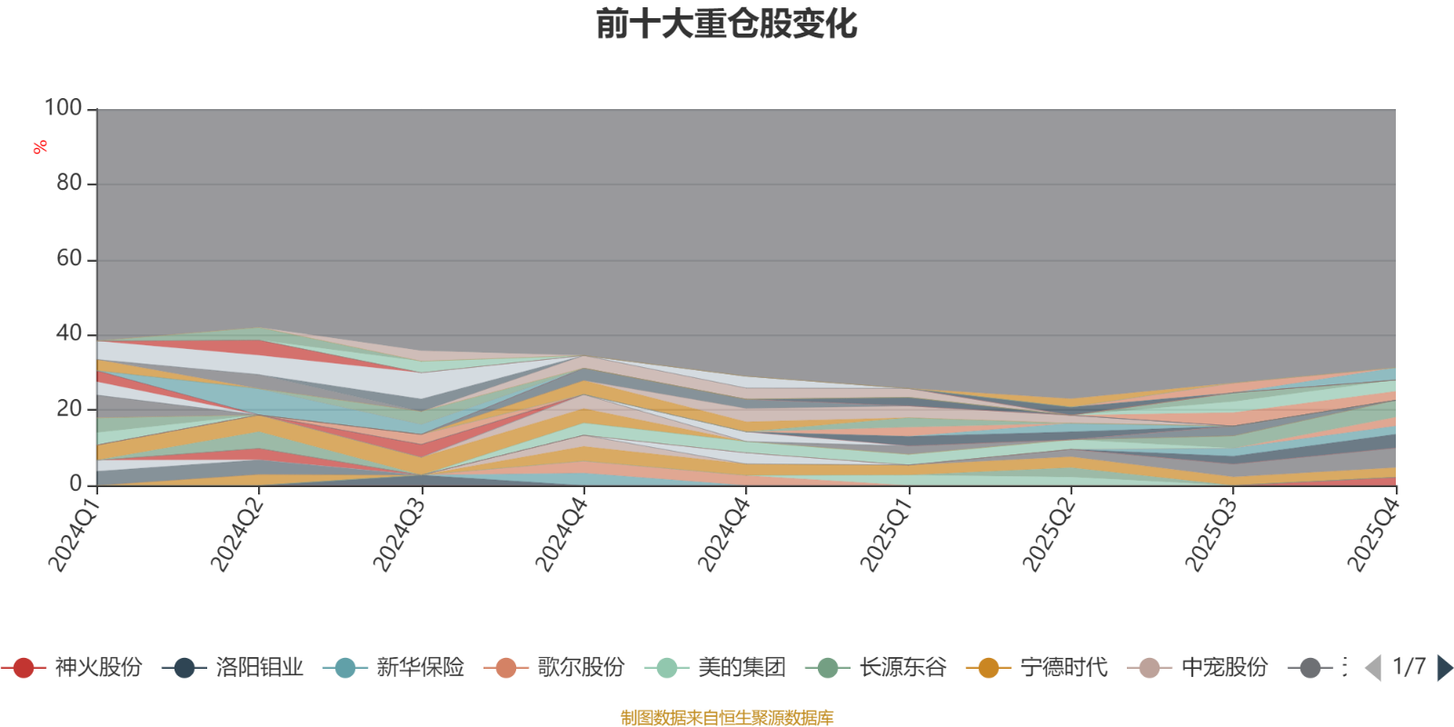 截至2025年四季度末,基金十大重仓股分别是天孚通信、应流股份、盐湖股份、中矿资源、阳光电源、宁德时代、科达利、华峰化学、东睦股份、神火股份。