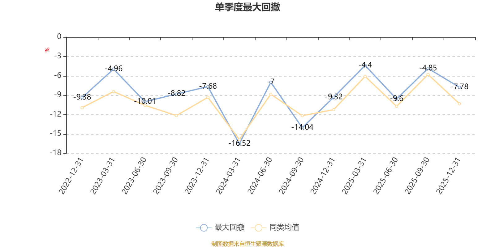 截至1月21日,基金近三年最大回撤为28.04%,同类可比基金排名69/378。单季度最大回撤出现在2024年一季度,为16.52%。