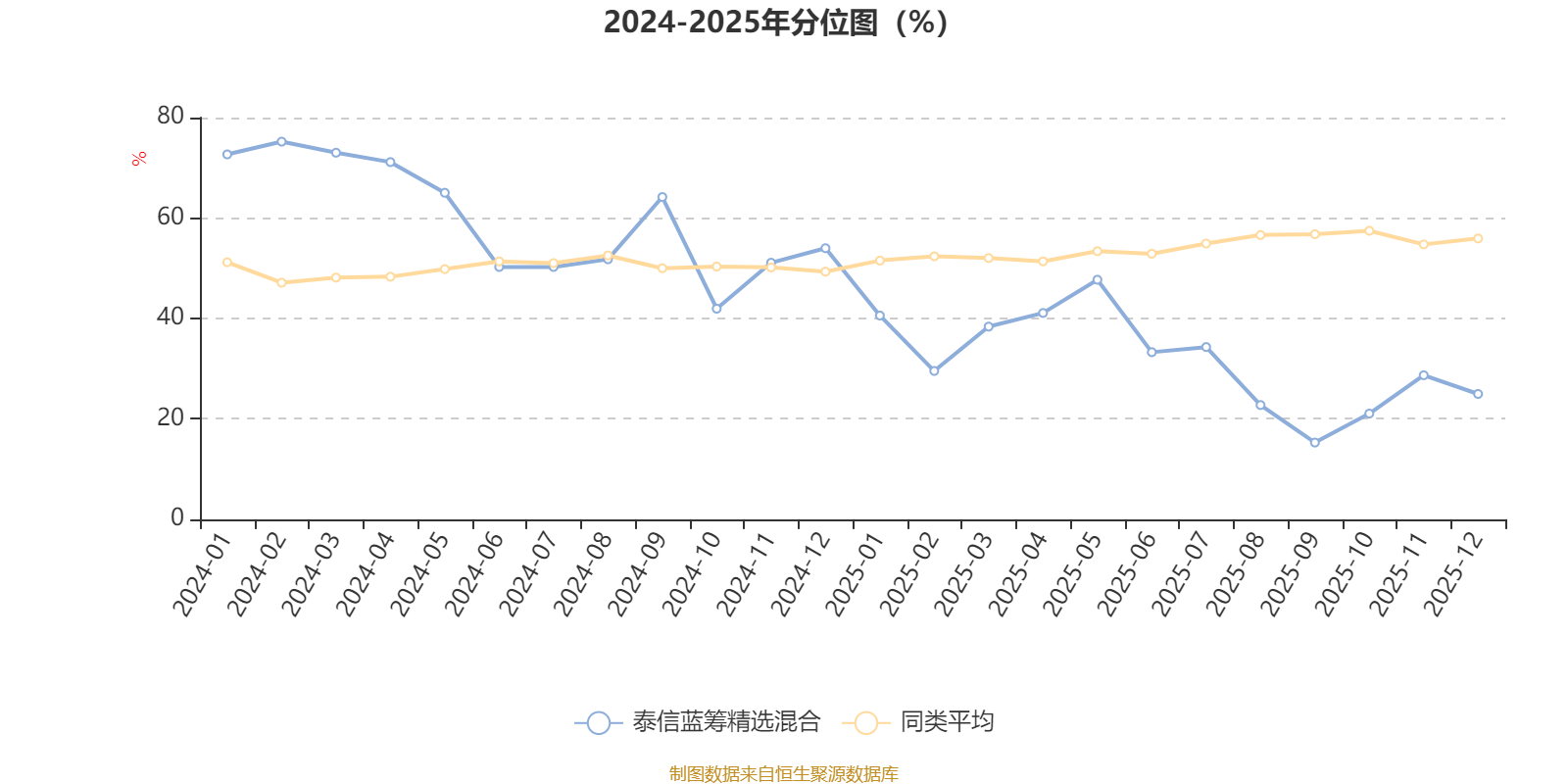 通过所选区间该基金净值增长率分位图,可以观察该基金与同类基金业绩比较情况。图为坐标原点到区间内某时点的净值增长率在同类基金中的分位数。