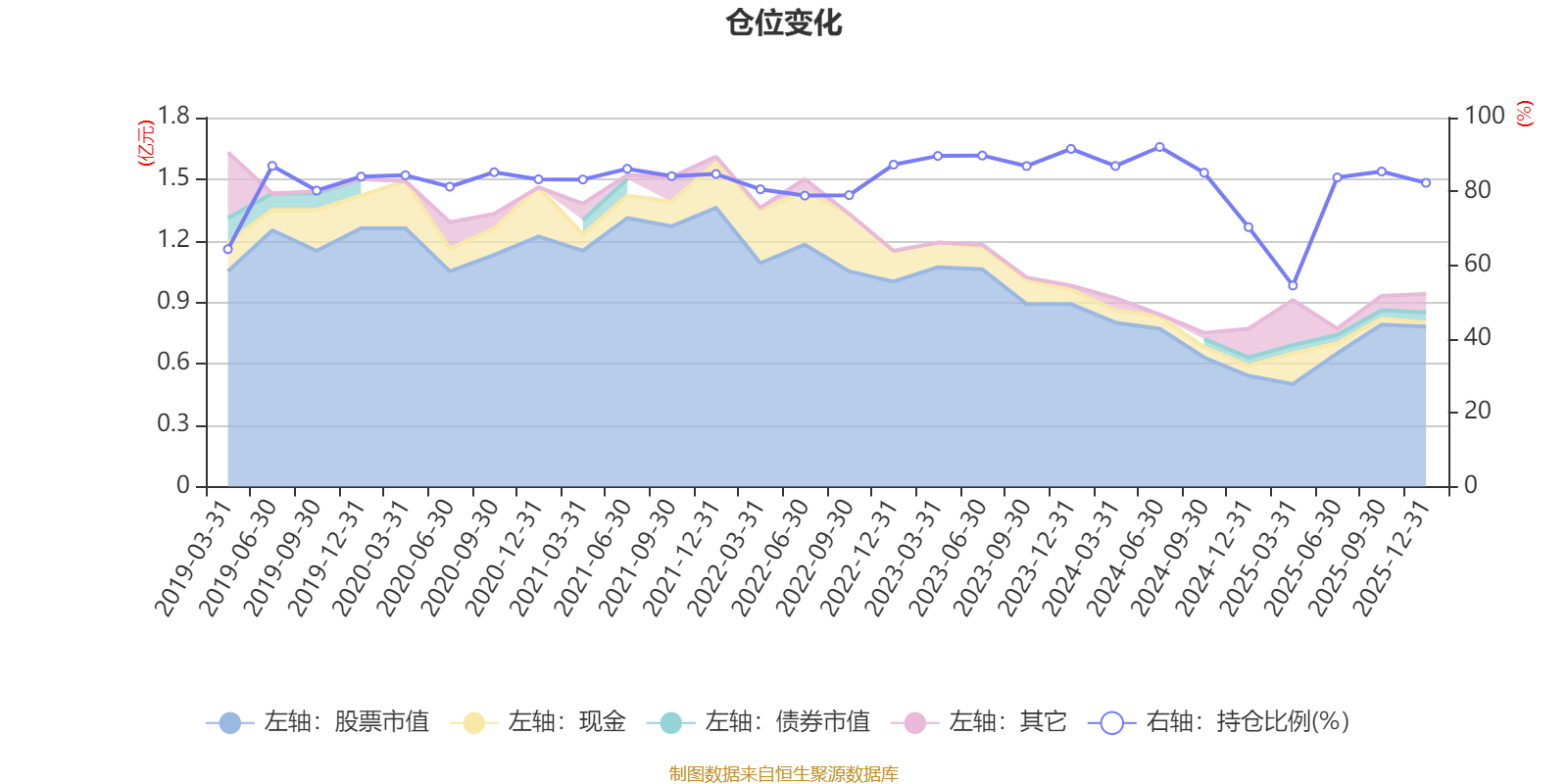 据定期报告数据统计,近三年平均股票仓位为83.17%,同类平均为84.04%。2024年上半年末基金达到92.03%的最高仓位,2025年一季度末最低,为54.49%。