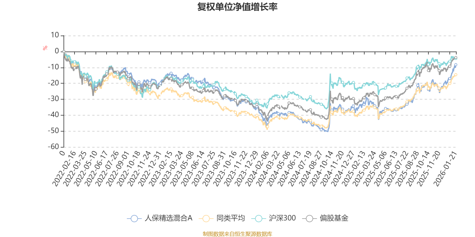 截至1月21日,人保精选混合A近三个月复权单位净值增长率为18.25%,位于同类可比基金100/689;近半年复权单位净值增长率为36.91%,位于同类可比基金158/689;近一年复权单位净值增长率为37.83%,位于同类可比基金326/673;近三年复权单位净值增长率为7.70%,位于同类可比基金244/396。