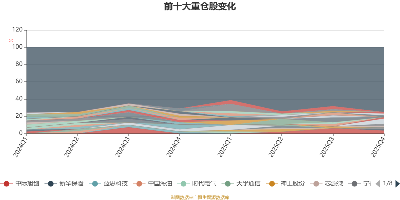 截至2025年四季度末,基金十大重仓股分别是芯碁微装、中际旭创、天岳先进、西子洁能、宁德时代、农业银行、海兴电力、新华保险、中兴通讯、安集科技。