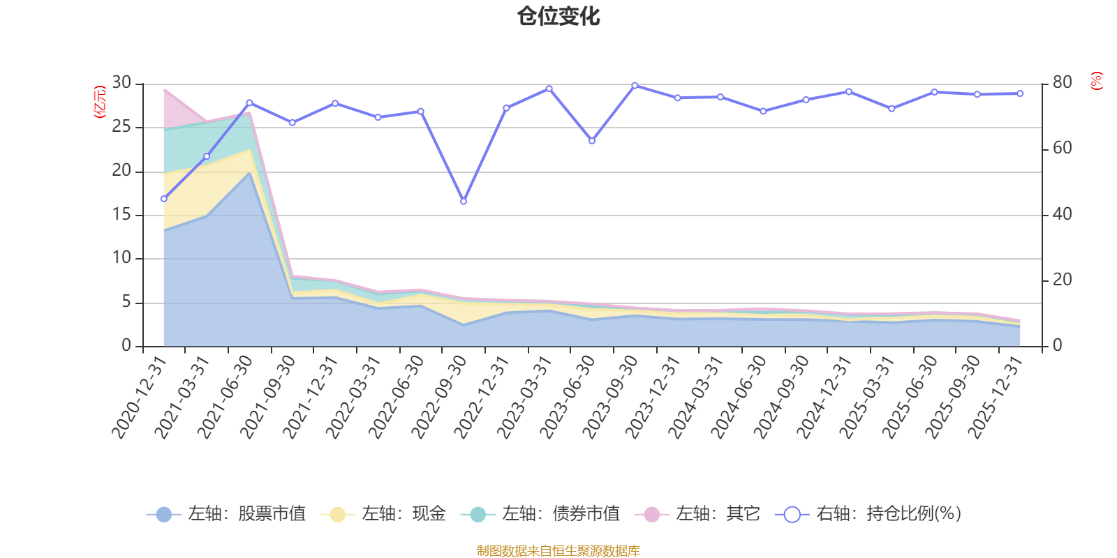 据定期报告数据统计,近三年平均股票仓位为75.01%,同类平均为67.52%。2023年三季度末基金达到79.44%的最高仓位,2022年三季度末最低,为44.18%。