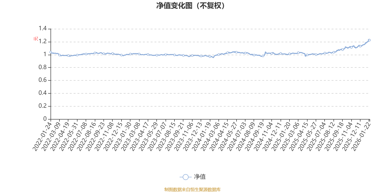 该基金属于偏债混合型基金。截至1月22日,单位净值为1.224元。基金经理是徐斌和朱梦娜。