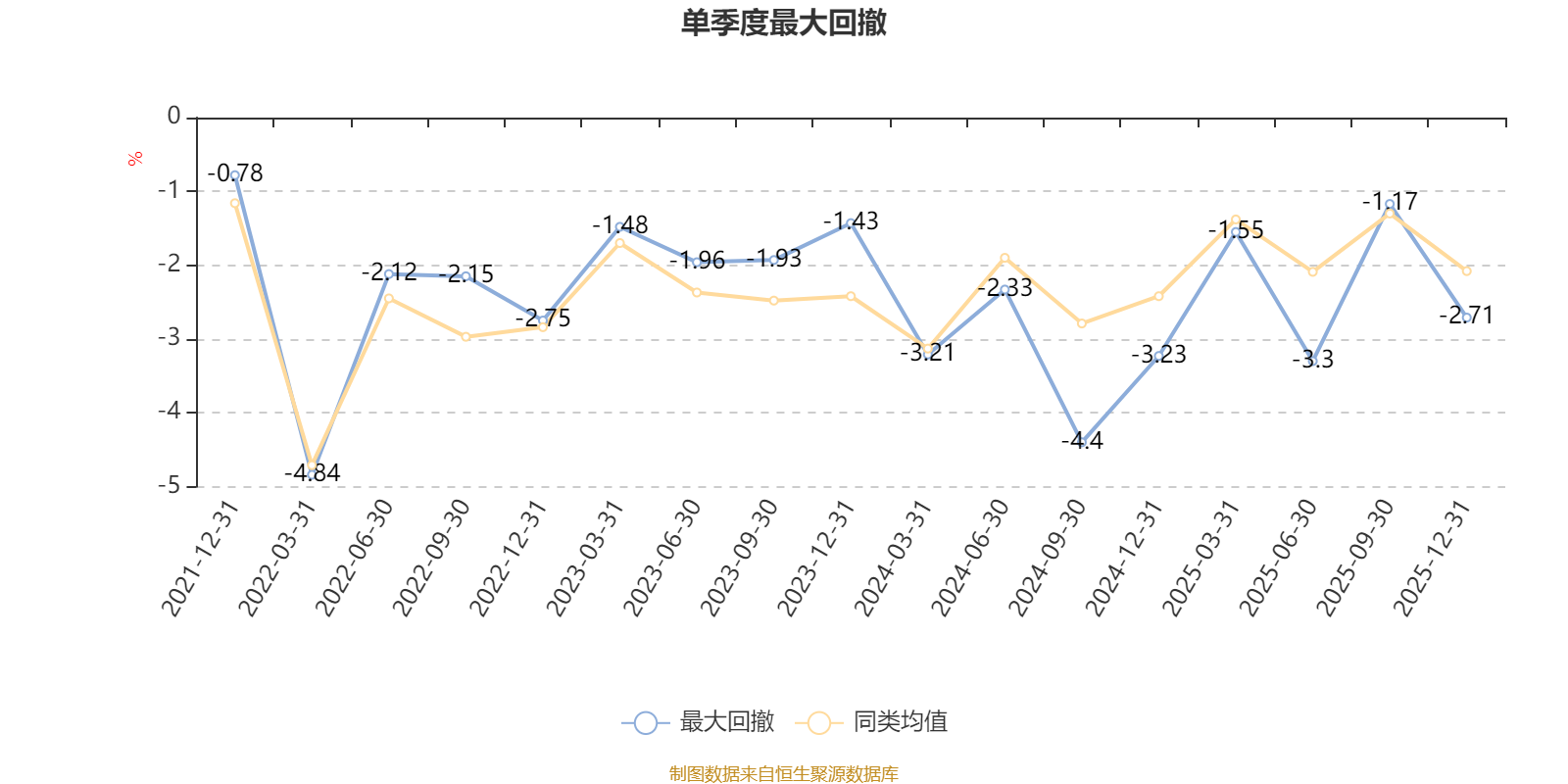 通过所选区间该基金净值增长率分位图,可以观察该基金与同类基金业绩比较情况。图为坐标原点到区间内某时点的净值增长率在同类基金中的分位数。