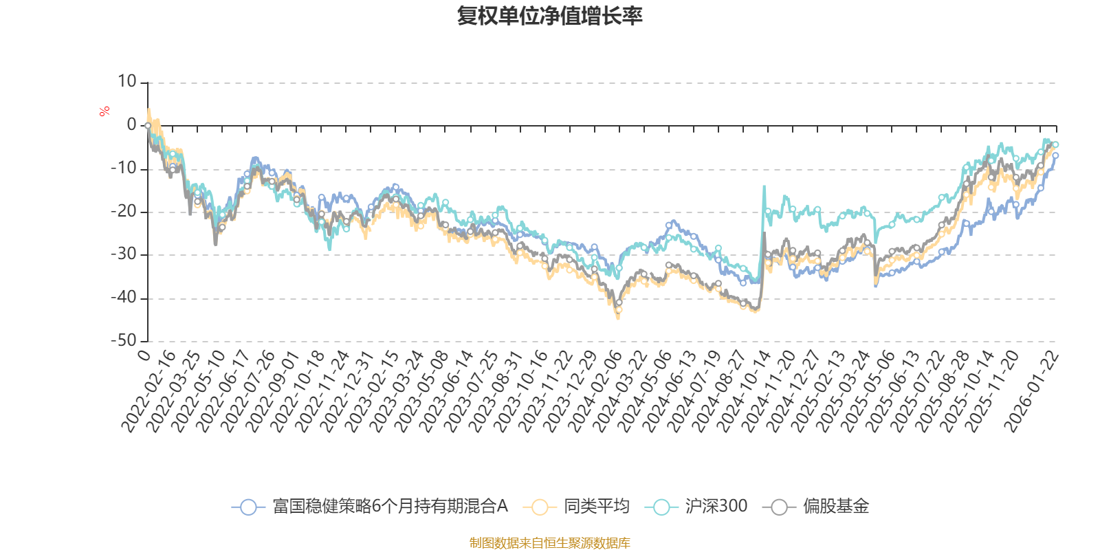截至1月22日,富国稳健策略6个月持有期混合A近三个月复权单位净值增长率为17.18%,位于同类可比基金26/265;近半年复权单位净值增长率为31.57%,位于同类可比基金84/265;近一年复权单位净值增长率为40.16%,位于同类可比基金129/265;近三年复权单位净值增长率为9.56%,位于同类可比基金180/256。