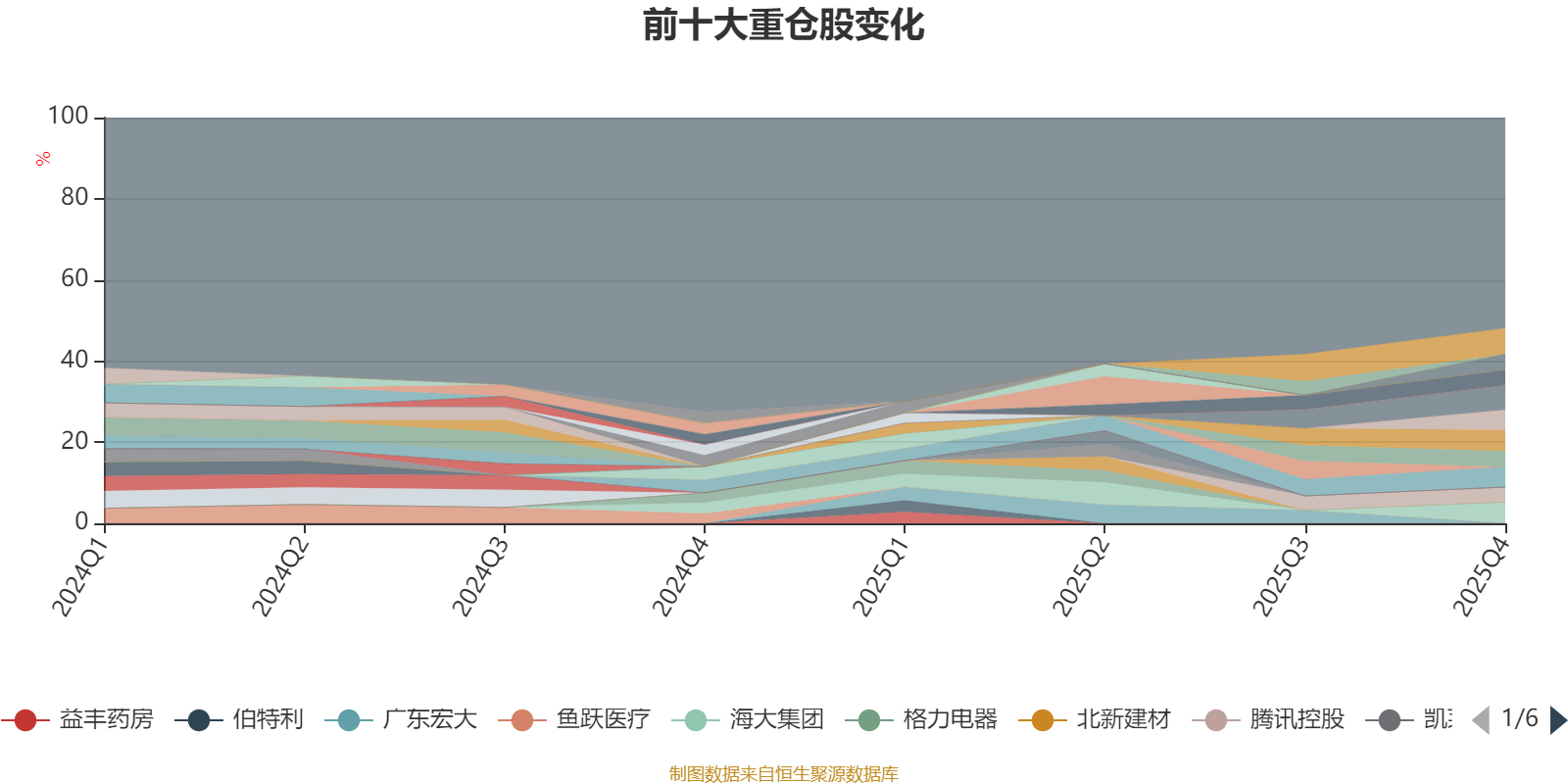 截至2025年四季度末,基金十大重仓股分别是华润置地、赛轮轮胎、海大集团、徐工机械、伊利股份、新洋丰、美亚光电、东方雨虹、豪迈科技、腾讯控股。