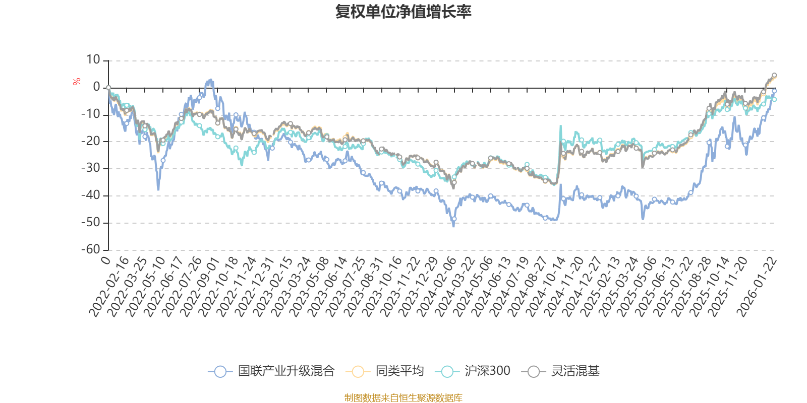 截至1月22日,国联产业升级混合近三个月复权单位净值增长率为21.41%,位于同类可比基金113/1286;近半年复权单位净值增长率为61.19%,位于同类可比基金79/1286;近一年复权单位净值增长率为63.75%,位于同类可比基金181/1286;近三年复权单位净值增长率为21.23%,位于同类可比基金531/1286。