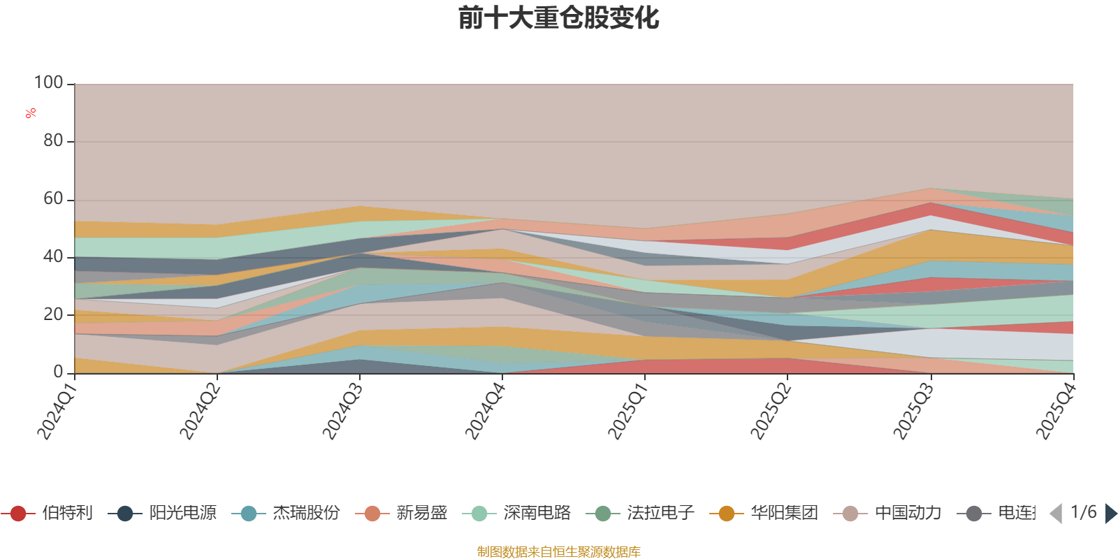 截至2025年四季度末,基金十大重仓股分别是生益科技、寒武纪、沪电股份、中际旭创、中钨高新、世纪华通、工业富联、科达制造、深南电路、盛屯矿业。