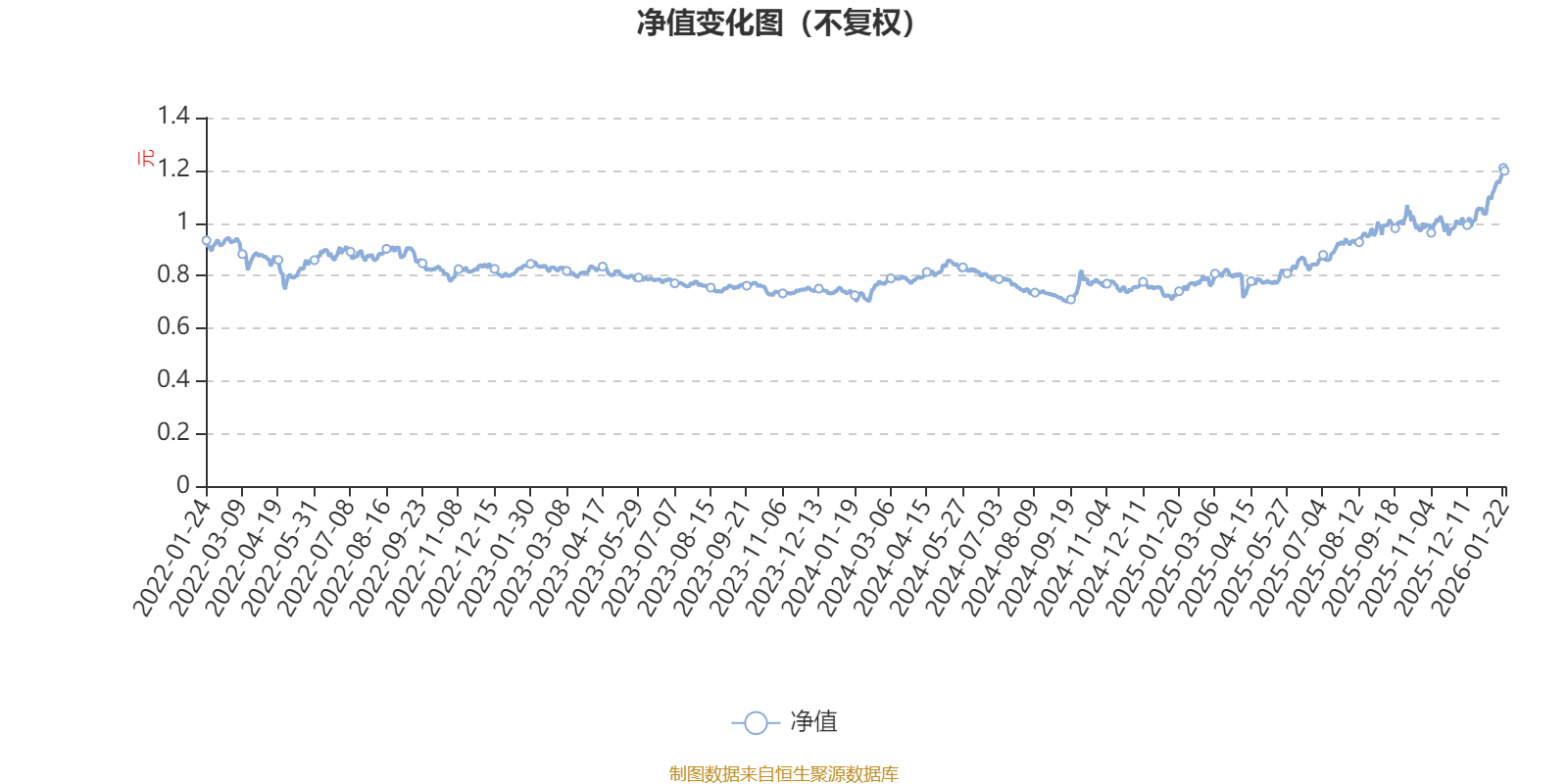 截至2025年四季度末,基金十大重仓股分别是中金黄金、招金矿业、山东黄金、万国黄金集团-新、紫金矿业、宏创控股、渣打集团、中国人寿、盛屯矿业、东方电气。