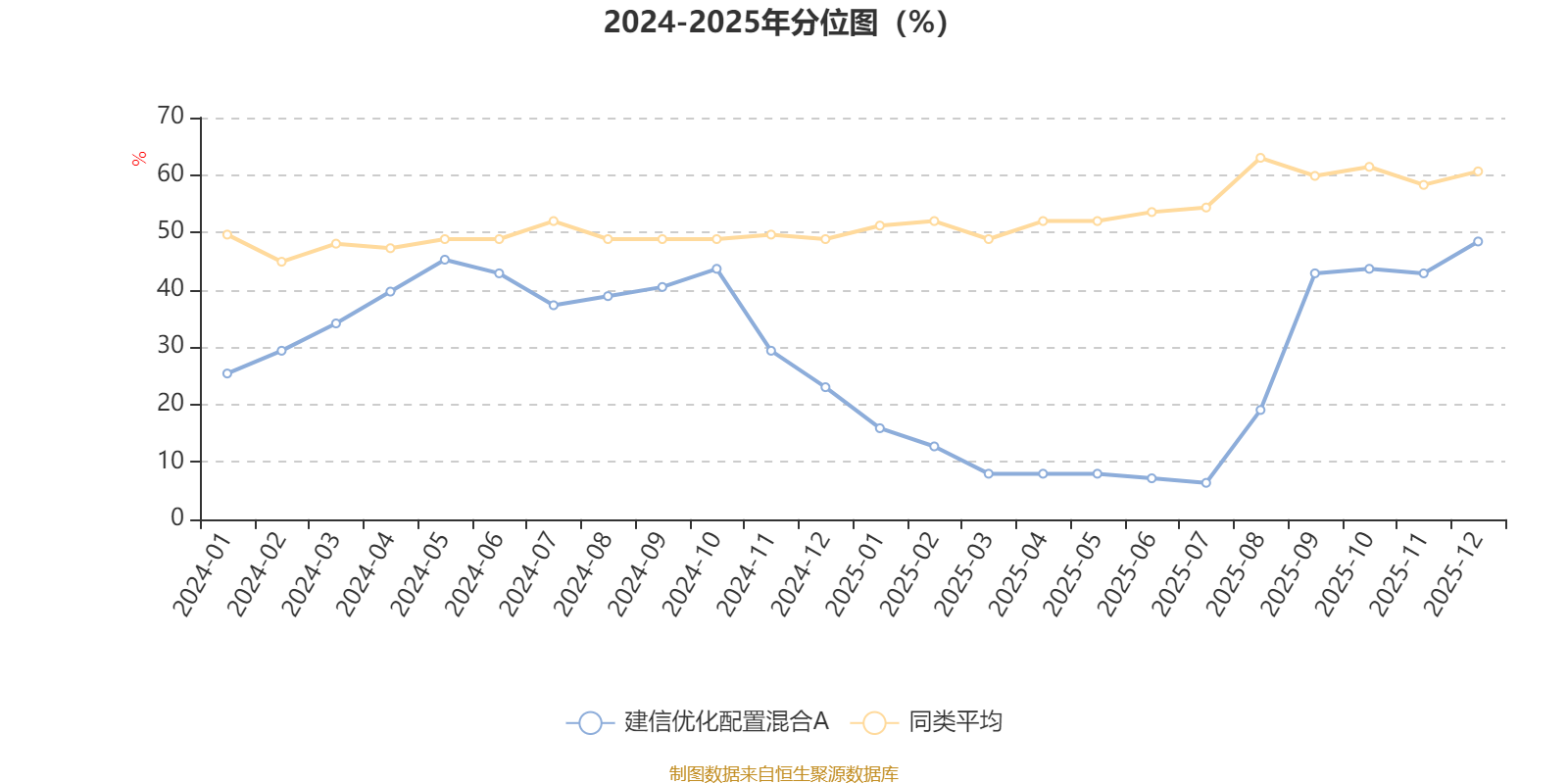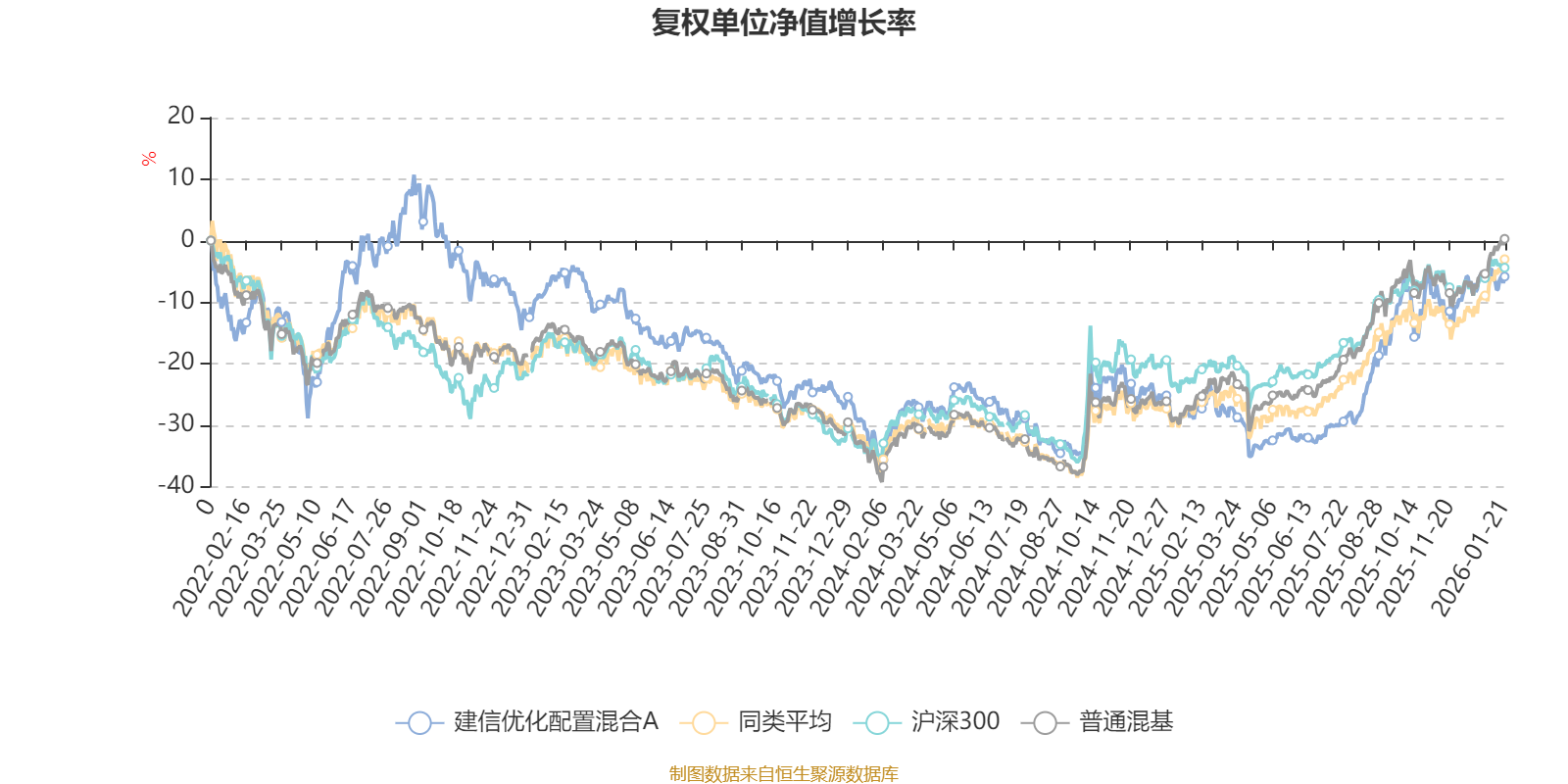 截至1月21日,建信优化配置混合A近三个月复权单位净值增长率为5.94%,位于同类可比基金84/134;近半年复权单位净值增长率为33.85%,位于同类可比基金24/134;近一年复权单位净值增长率为29.46%,位于同类可比基金68/131;近三年复权单位净值增长率为1.09%,位于同类可比基金103/124。