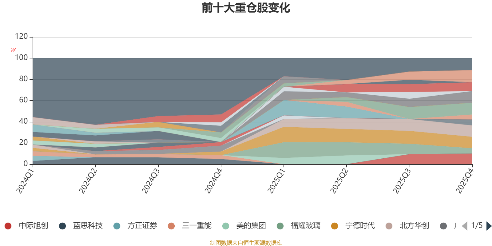 截至2025年四季度末,基金十大重仓股分别是中国平安、工业富联、立讯精密、北方华创、宁德时代、中际旭创、春风动力、徐工机械、福耀玻璃、隆鑫通用。